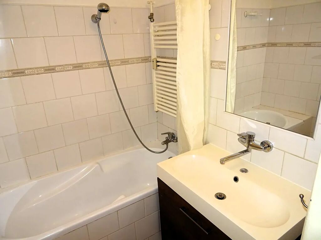Koupelna s vanou , umyvadlem, topný žebřík.Samostatné WC.