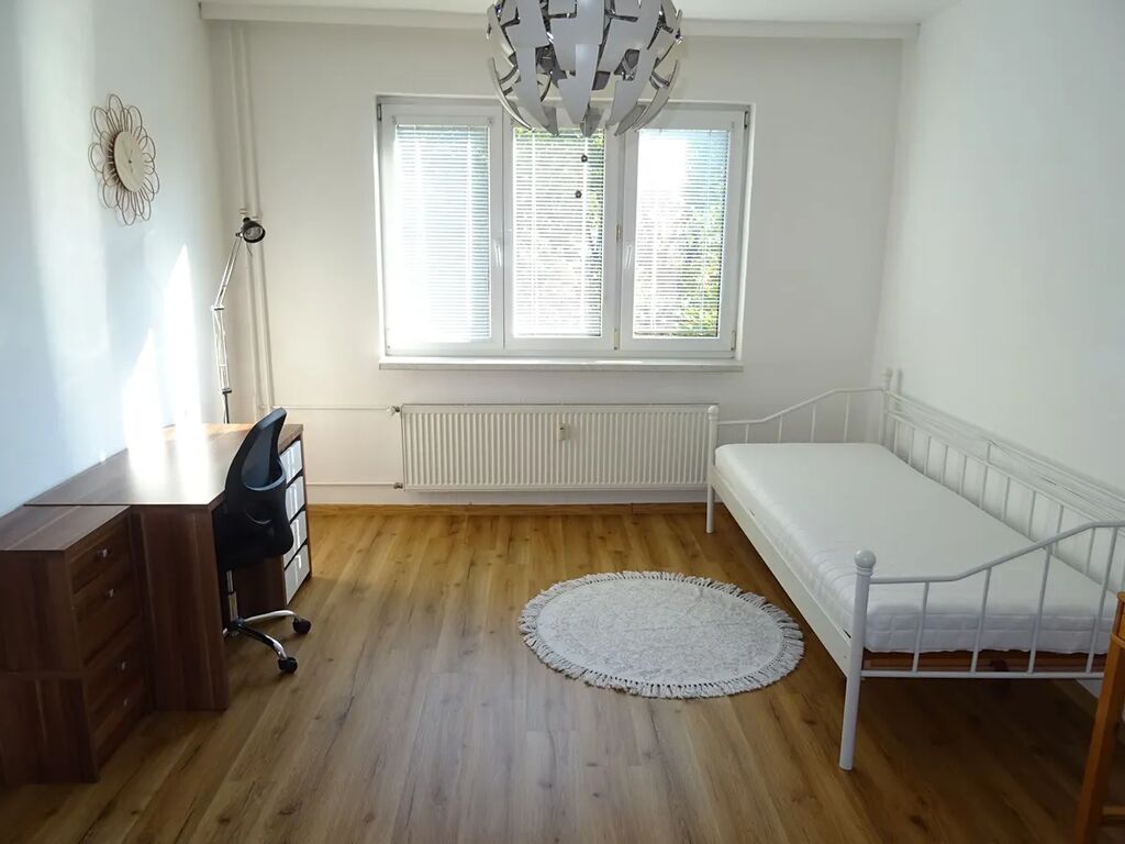 Dva samostatné neprůchozí pokoje, vybavené základním nábytkem, postele, šatní zrcadlové skříně, pracovní stůl, židle. Nová plovoucí podlaha v pokojích.