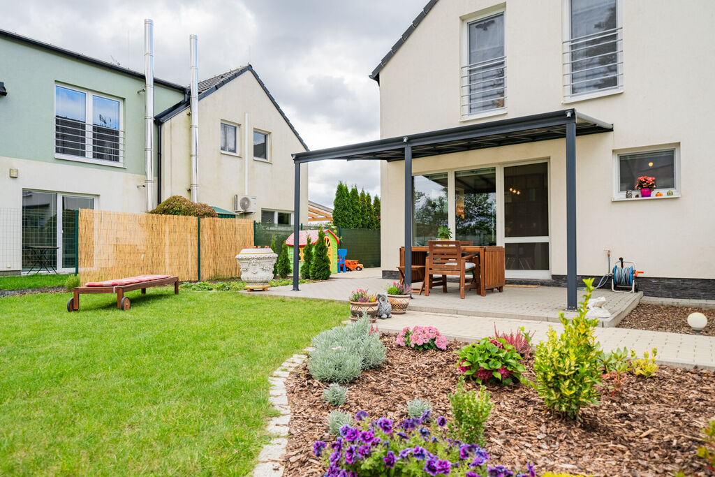 Pokud hledáte pohodlné bydlení pro Vaši rodinu se zahrádkou a zároveň v blízkosti Prahy, máme pro Vás skvělou nabídku na koupi řadového domku. Jedná se v podstatě o mezonetový byt 3kk, 86 m2, se zastřešenou terasou, zahradním domkem, parkováním a pečlivě udržovanou zahradou o rozloze 228 m2.