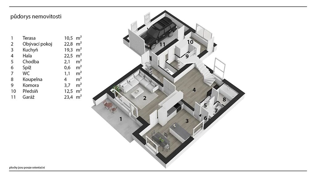 Celková plocha parcely činí 1.063 m², což zajišťuje prostor pro venkovní aktivity a rodinné chvíle na zahrádce.