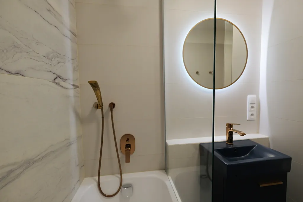 Nabízíme dlouhodobý pronájem luxusního bytu po celkové velmi vydařené rekonstrukci s dispozicí 2+1 v žádané lokalitě Uherského Brodu - části Šaripova. Jedná se o komfortní bydlení s dobrou dostupností do centra města s krásným výhledem na okolí. Celý interiér navrhla bytová designérka, která splnila funkčnost, praktičnost a styl celého bytu. Dispozičně se jedná o vstupní chodbu s klimatizací, odkládacím prostorem a šatnou. Kuchyň je oddělena posuvnými dveřmi s vitrážovou výplní, je zde nová kuchyňská linka s mnoha úložnými prostory a vestavěnými spotřebiči - lednice s mrazákem, myčka, pračka, indukční varná deska, horkovzdušná a mikrovlnná trouba a jídelní stůl se čtyřmi židlemi. Obývací pokoj je zařízen rozkládací sedací soupravou se vstupem na lodžii. Samostatná ložnice je orientovaná na jihozápad. V koupelně se nachází vana se zástěnou, kvalitní umyvadlo se skříňkou, žebříkový radiátor, skříňka s úložným prostorem a toaleta. Podlahy jsou řešeny novými dřevěnými parkety a dlažbou. K bytu náleží sklepní kóje umístěná v přízemí bytového domu. Parkování je možné přímo u domu. Nájem činí 24.000,-Kč/měsíčně + 4.500,-Kč/měsíčně na energie. Byt je ihned k dispozicí.