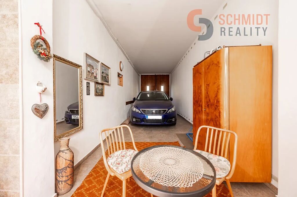 Do domu vstoupíme přes prostornou garáž, která dále pokračuje na dvorek za domem. Vstup do domu je situován na konci garáže, ale také ze dvora.