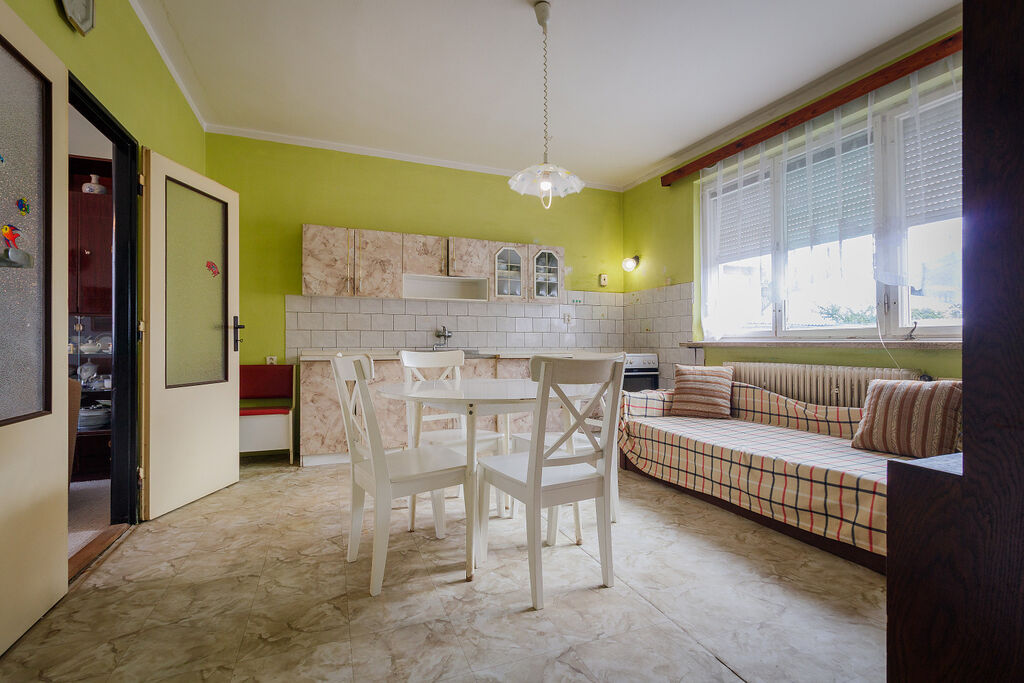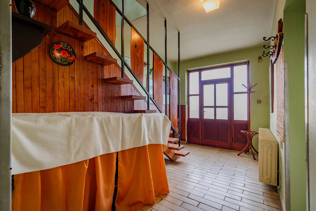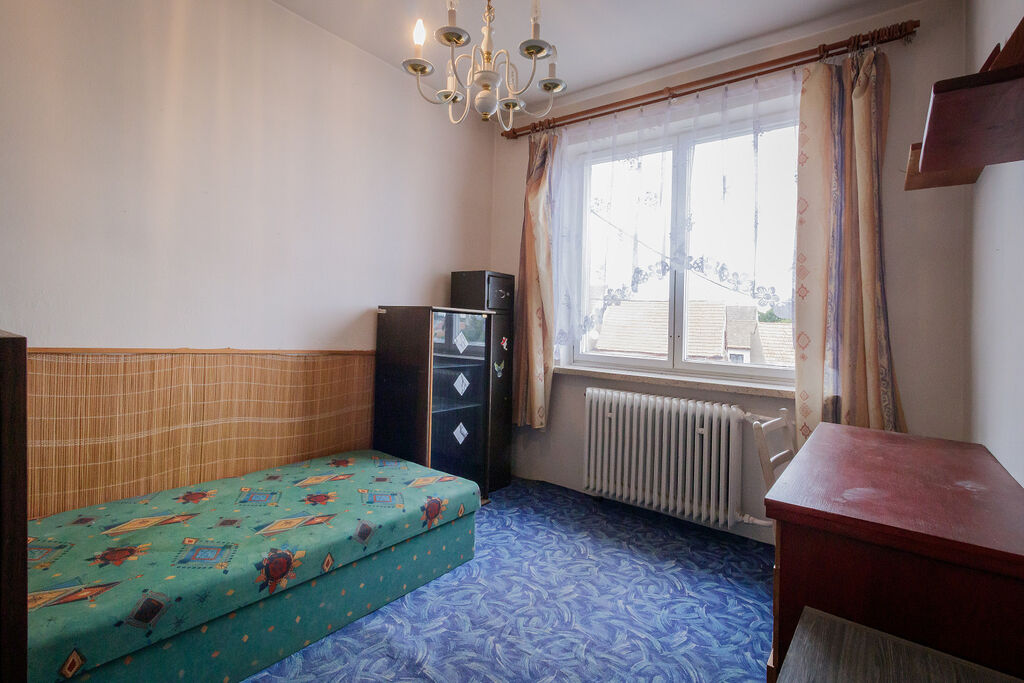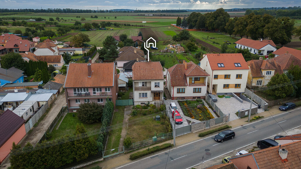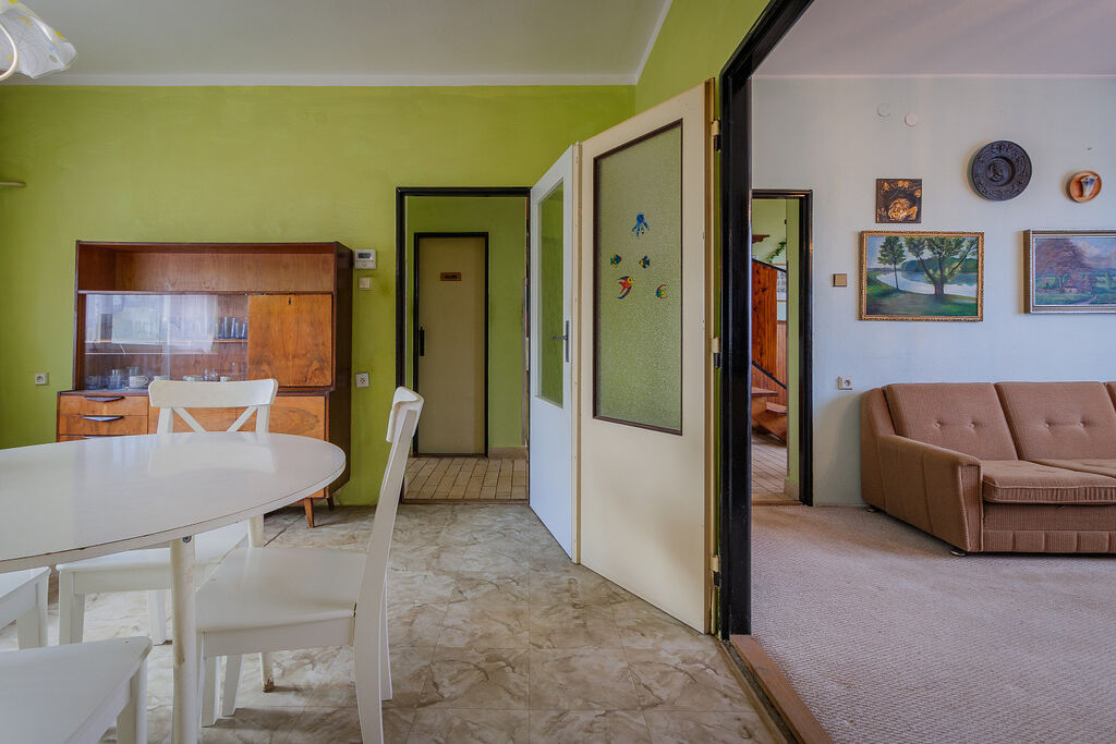- V patře: 3 neprůchozí pokoje, koupelna s WC, balkon, vstup na půdu (možné využití).
