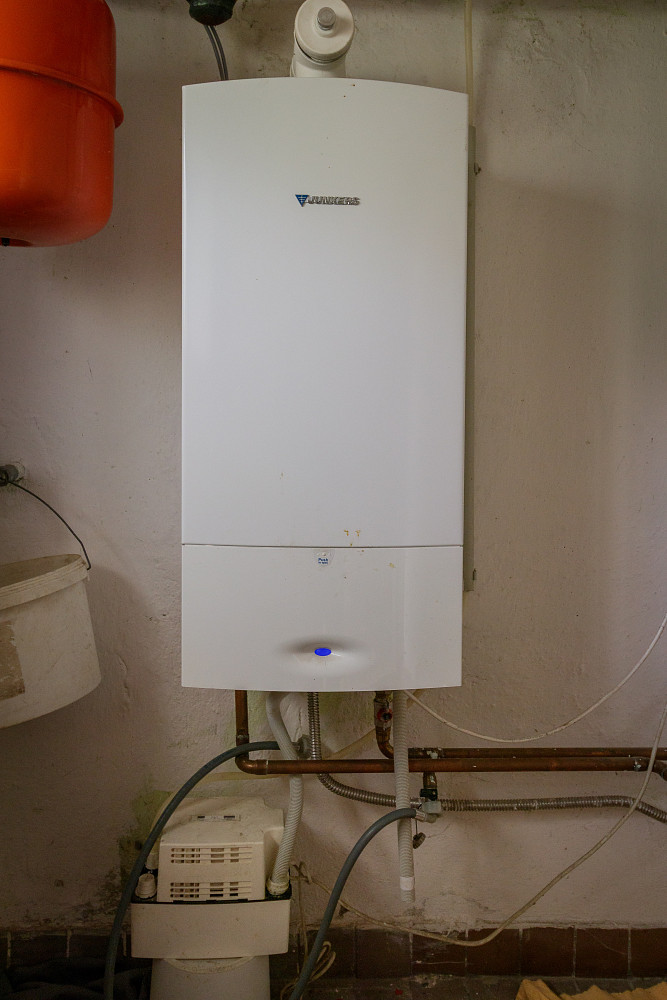 V domě je centrální topení (radiátory), zdrojem tepla na topení a ohřev TUV je