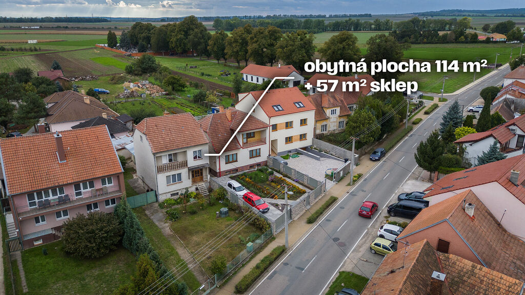 Obytná plocha: 114 m² ( 1NP a 2NP) + sklep 57 m²