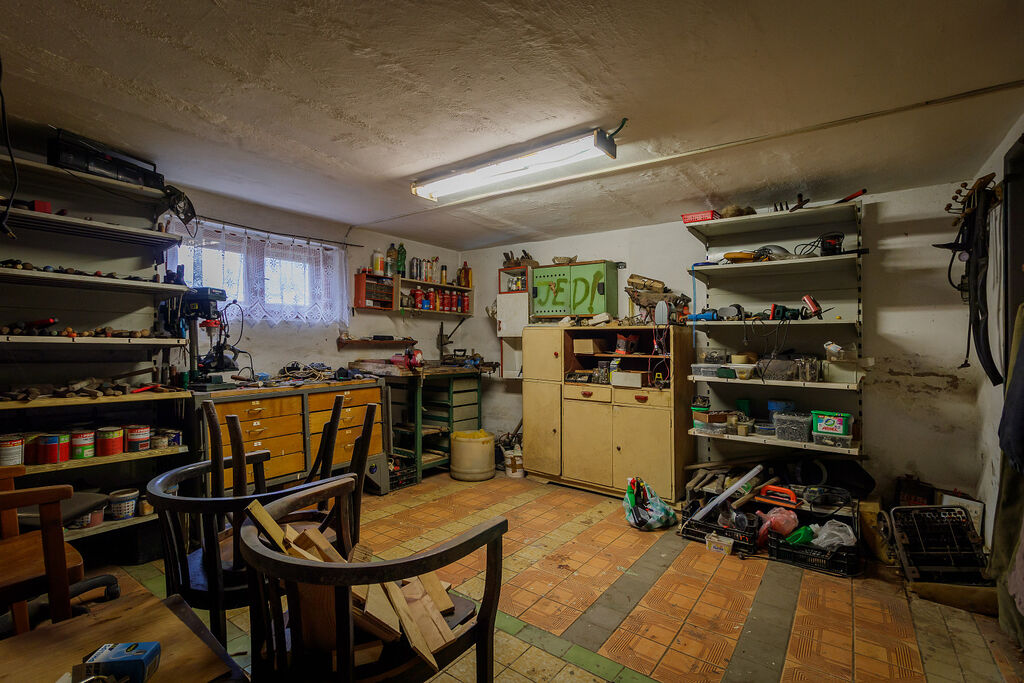 - Celý dům je podsklepený, ve sklepě je dílna, kotelna, velké množství úložného prostoru, vstup ze sklepa na zadní část pozemku.