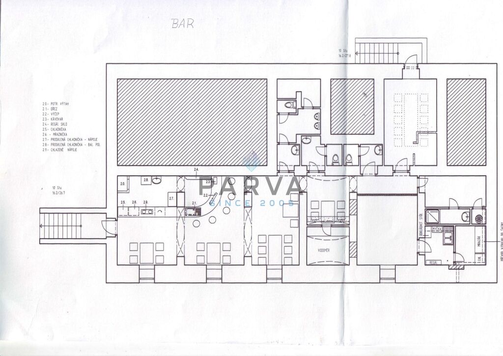 Prostory byly původně využívány jako noční klub, nově byl však připraven pro provoz pizzerie. Ta zde nakonec nebyla otevřena, takže jsou prostory připravené pro nového nájemce a jeho podnikatelský záměr. Součástí nájmu je bar a nábytek. Zařízení na přípravu pizzy, které je v prostorách umístěno, je možné po dohodě výhodně odkoupit od současného provozovatele, avšak není to podmínkou nájmu.