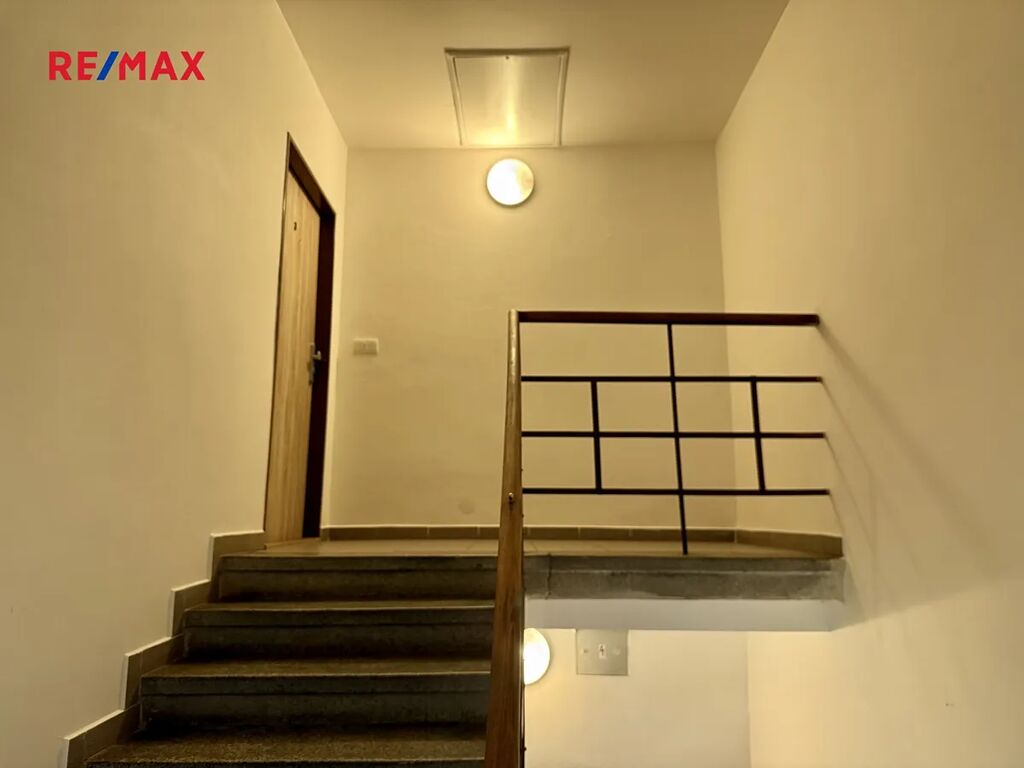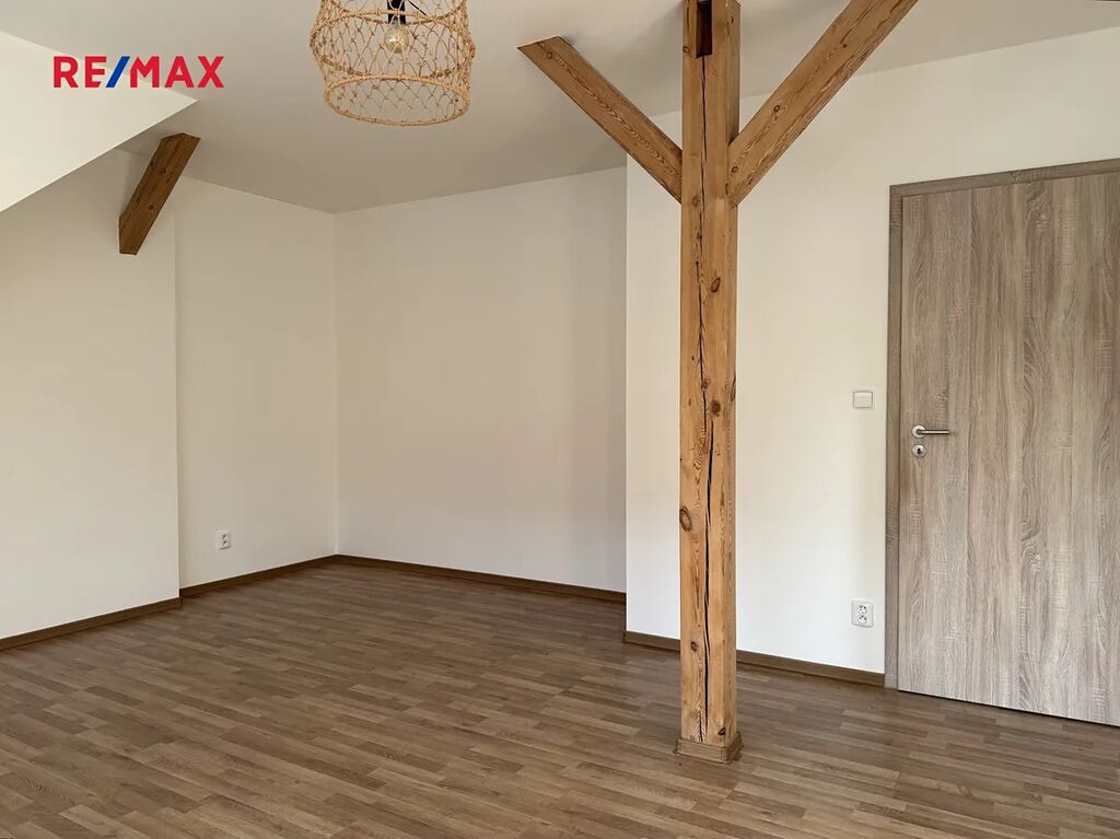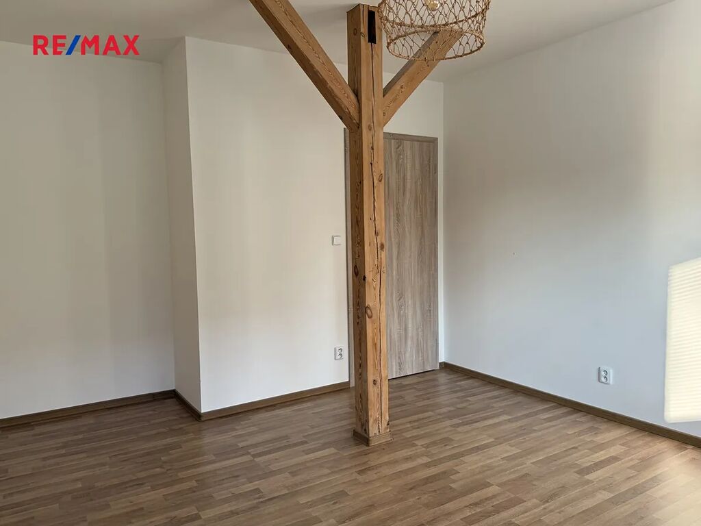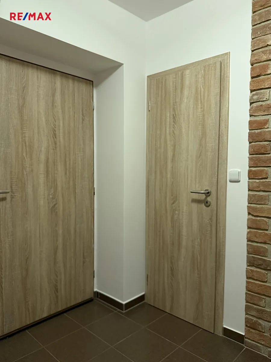 Byt je částečně vybaven – kuchyňská linka včetně spotřebičů a koupelna.