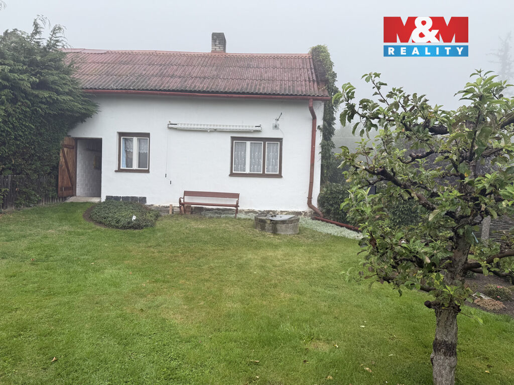 K chatě patří také dílna a krásná zahrada s ovocnými stromy, zeleninovými záhonky a místem pro odpočinek – ideální k posezení s rodinou, grilování i relaxu v přírodě.