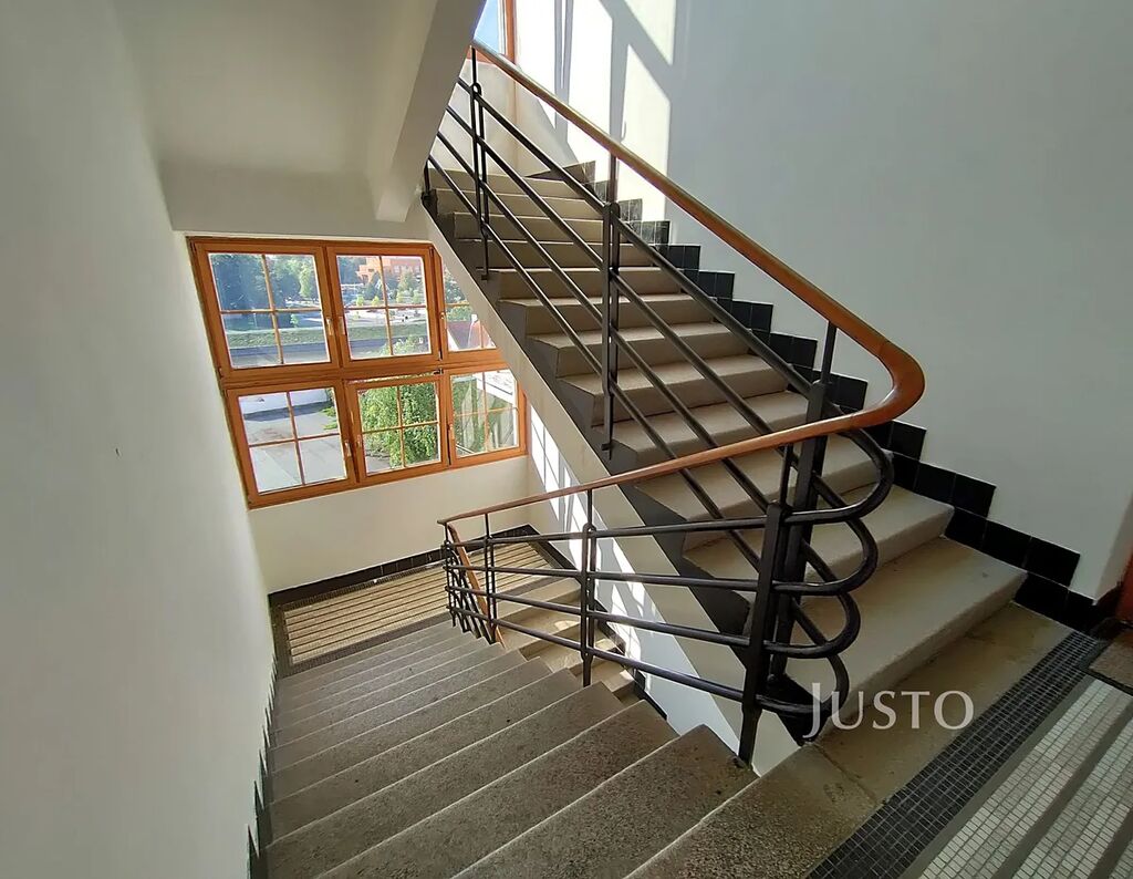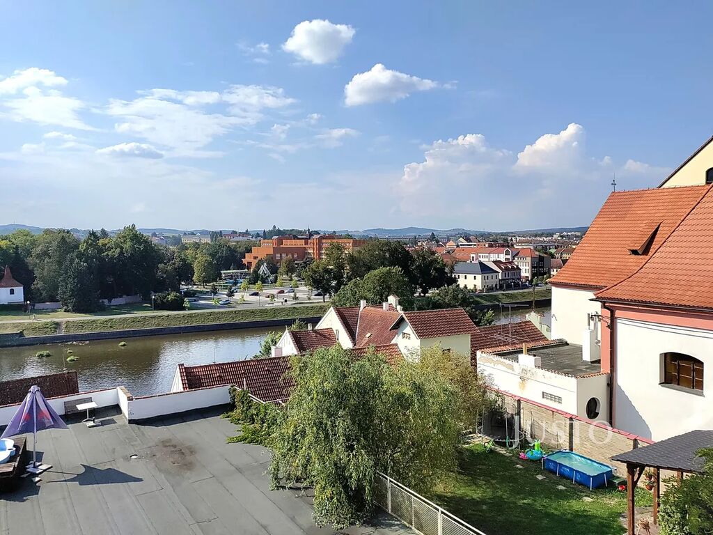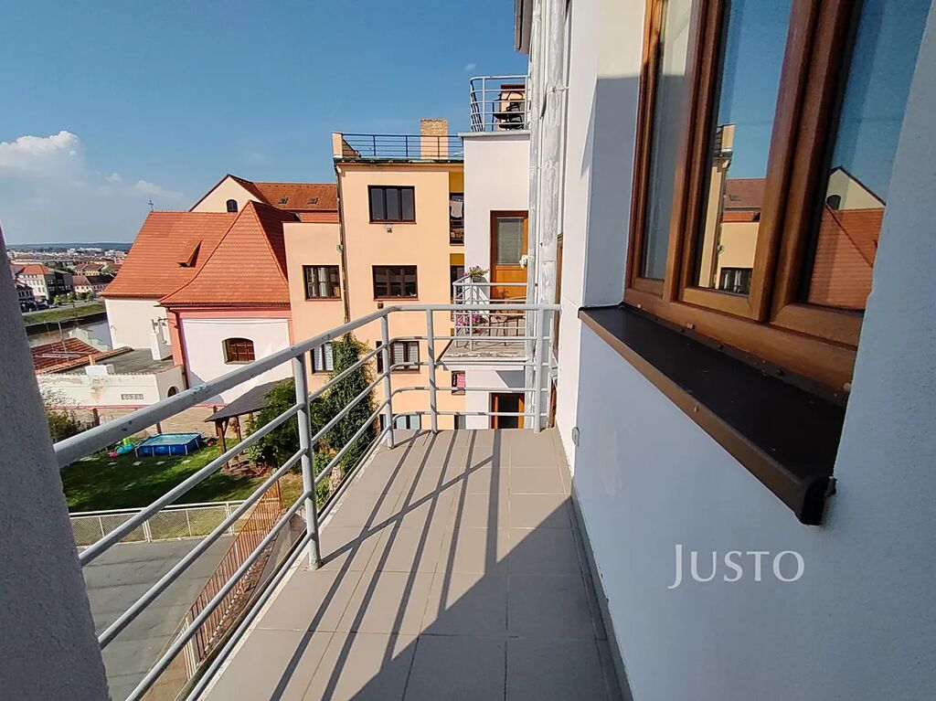 Dispozice - vstupní hala, kuchyň s výhledem na řeku s kompletně vybavenou kuchyňskou linkou (myčka, plynová varná deska, elektrické trouba, mikrovlnná trouba, lednice s mrazákem), pokoj se vstupem na lodžii sousedící s kuchyní, 2 pokoje s výhledem do ulice, přičemž jeden pokoj s balkonem, samostatné WC, koupelna, šatna, komora.