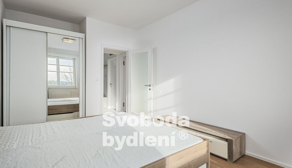 Obývací pokoj a vedlejší ložnice díky jižní orientaci a vyššímu patru nabízí příjemné prosvětlení a výhled přes střechy domů do okolí. Ložnice s balkonem jsou orientovány na sever do vnitrobloku. Kuchyňská linka je vybavena všemi spotřebiči (elektrickou varnou deskou, troubou, lednicí a myčkou). V koupelně nalezneme velký sprchový kout, umyvadlo a topný žebřík. Komora v bytě disponuje přípojkou na pračku a sušičku. Základní vybavení v bytě zůstává (postel, skříň, skříňka pod TV, jídelní stůl se židlemi) .