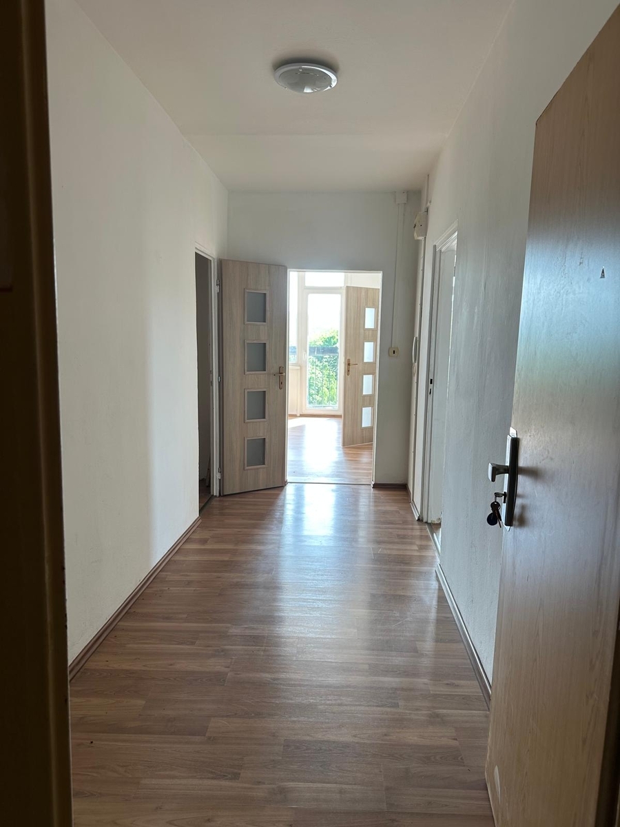 Byt se nachází v postupně rekonstruovaném domě, který je posazen kousek od centra. Byt s kuchyňskou linkou, sporákem, plovoucí podlahy v celém bytě, zděná koupelna s vanou. Po vstupu do bytu je předsíň se šatnou, kuchyň se spíží, koupelna, WC, obývací pokoj a 2x ložnice. Byt je bez vybavení, volný k nastěhování od září. Velmi dobrá občanská vybavenost a dostupnost do centra. Doporučuji - levné dálkové vytápění oproti plynu, nízké náklady na bydlení.