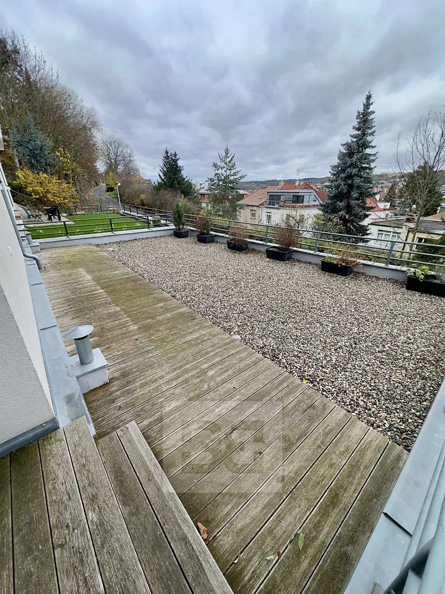 Nabízíme Vám k pronájmu byt 3+kk s obytnou plochou 74 m², situovaný v přízemí vilového domu v ulici Na Provaznici - Smíchov. Byt se sestává ze vstupní chodby, samostatné toalety, ložnice, koupelny se sprchovým koutem a druhou toaletou, obývacího pokoje s kuchyňským koutem plně vybaveným vestavnými spotřebiči včetně myčky nádobí a ložnice. K bytu náleží terasa a garáž přístupná z ulice. Z ulice lze do bytu vejít po venkovních schodech nebo výtahem.