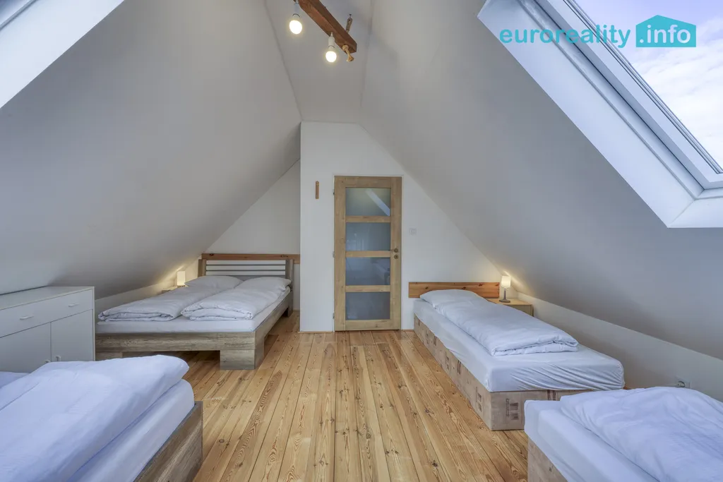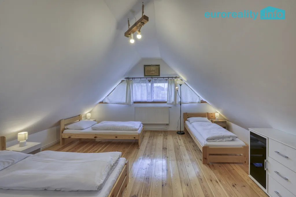 Dispozice přízemí je 2+kk plus koupelna vybavená sprchovým koutem a WC. V patře jsou další dva pokoje a samostatné WC, což zvyšuje pohodlí a soukromí pro všechny členy domácnosti. Dům je ve velmi dobrém stavu a je připraven k okamžitému nastěhování.