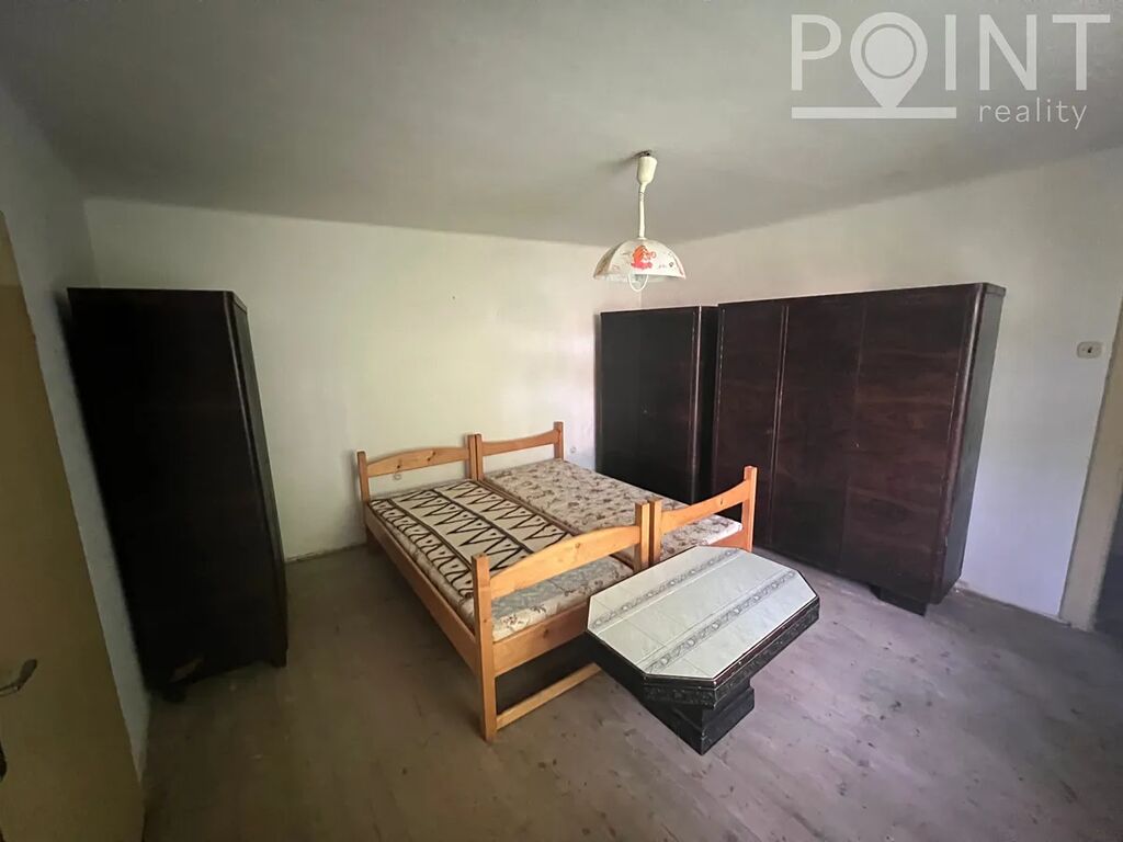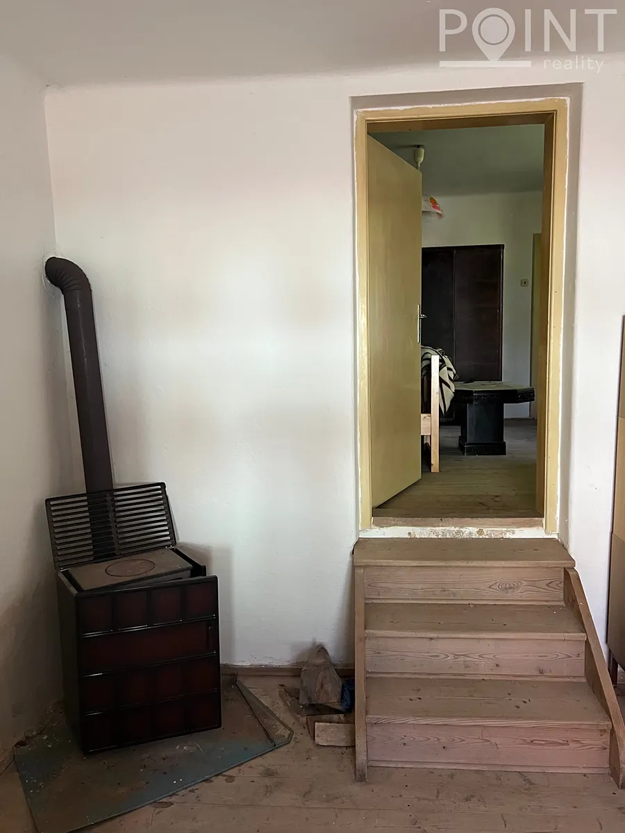 Dispozice RD: předsíň, kuchyně, obývací pokoj, koupelna se sprchovým koutem, umyvadlem a toaletou, ložnice a dva pokoje sloužící nyní jako pracovna a skladový prostor.