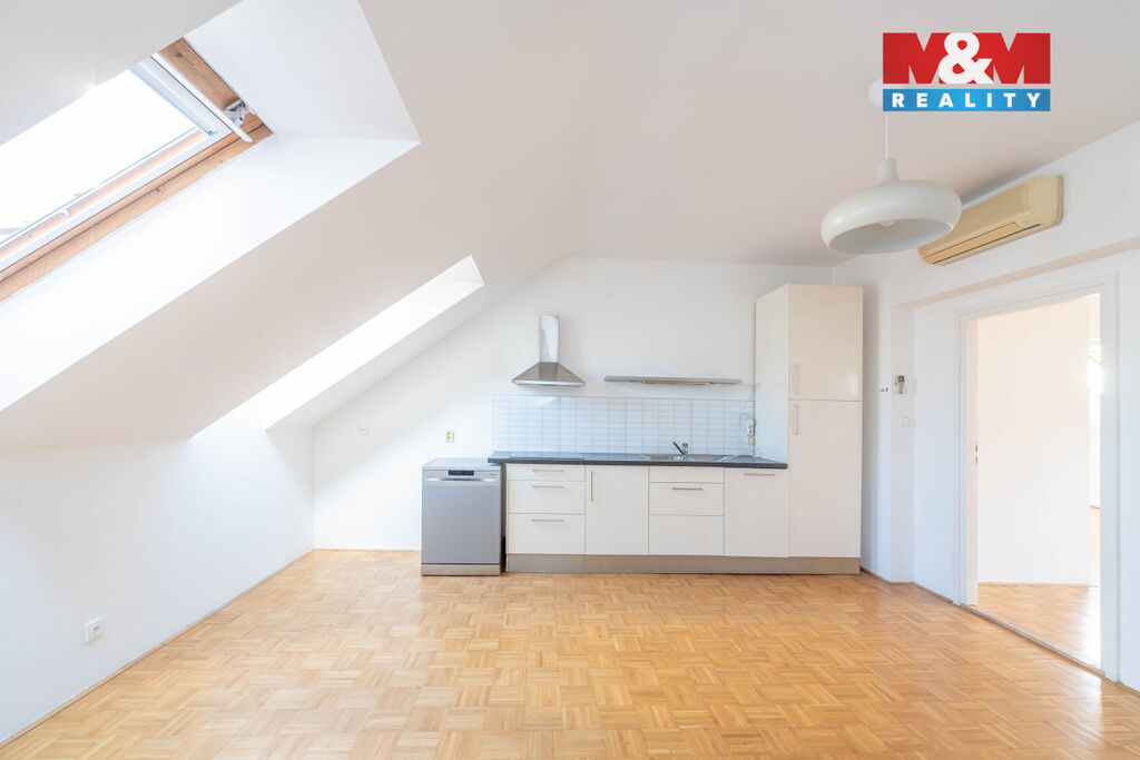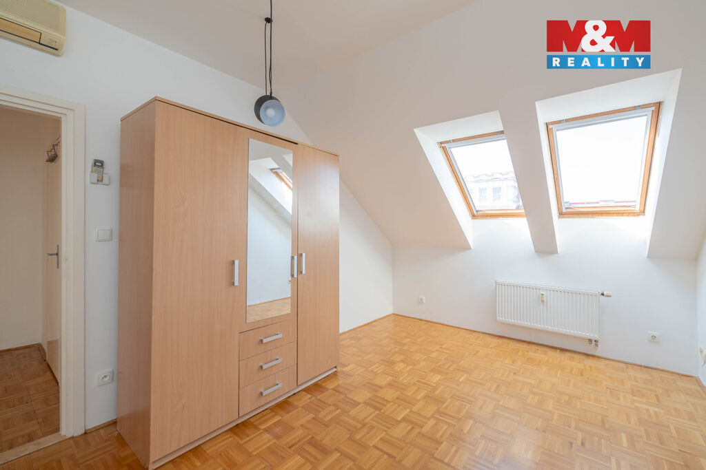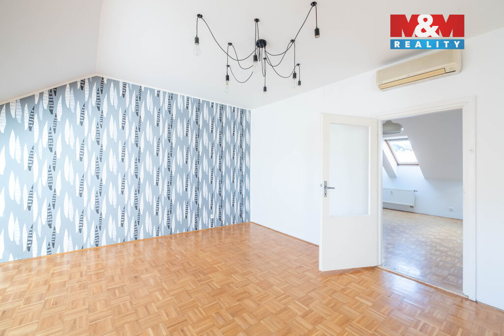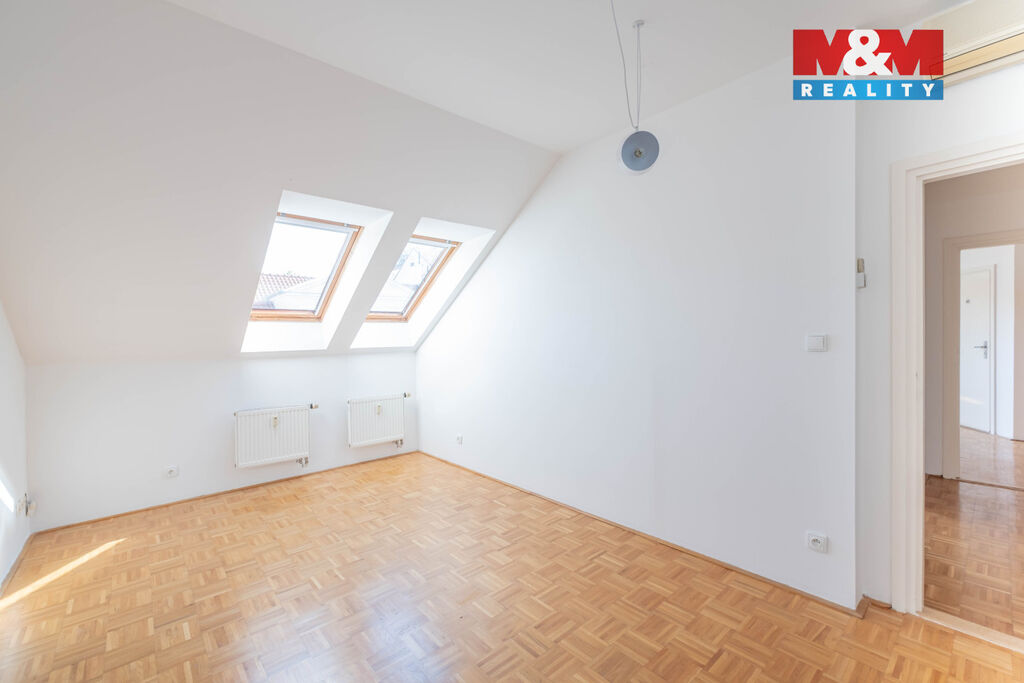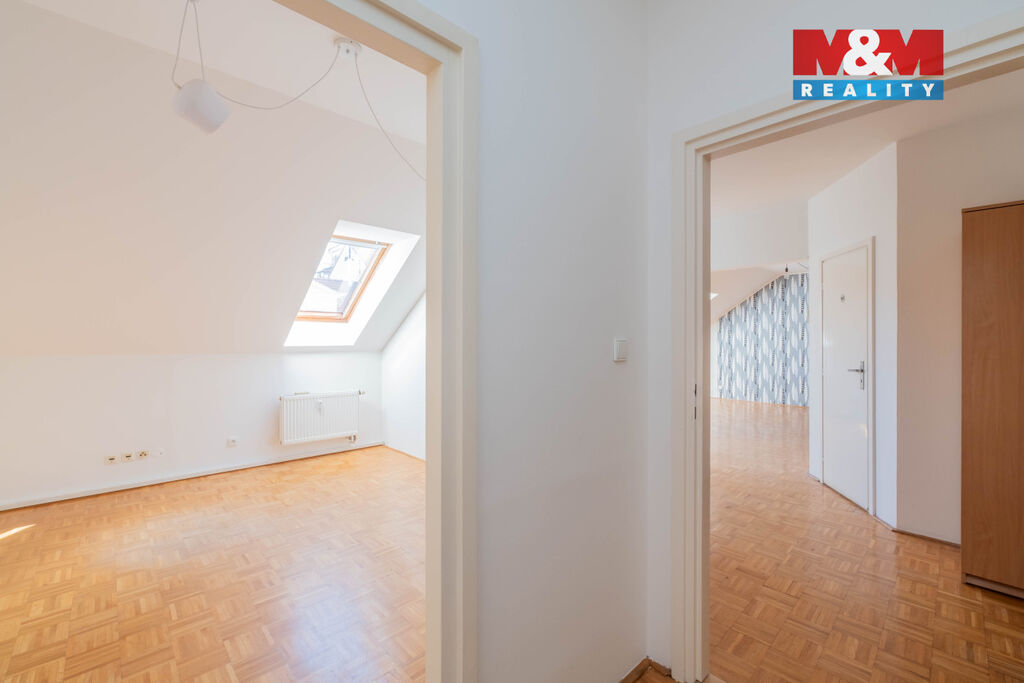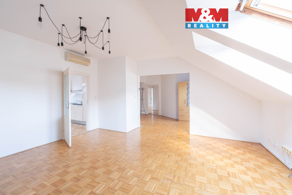 Nabídka dlouhodobého pronájmu prostorného podkrovního bytu 4+1, 120 m2, ve 4. patře cihlového domu s výtahem. Jediný byt na patře, v klidné jednosměrné ulici Baranova, na rozhraní Vinohrad a Žižkova. Byt je dispozičně rozdělen na obývací část s prostornou kuchyní, samostatnou toaletu u vstupu do bytu a oddělenou část se 3 neprůchozími ložnicemi s koupelnou a druhou toaletou. Dřevěné parkety v celém bytě, klimatizace ve všech místnostech, střešní okna s roletami. Kuchyňská linka se sklokeramickou varnou deskou, digestoří a myčkou. V koupelně vana se sprchovou zástěnou, přípojka na pračku, dvě umyvadla a toaleta. Byt se pronajímá nezařízený. Centrální vytápění a ohřev teplé vody. Dispozice bytu nabízí možnost pronájmu bytu pro rodinu, pro firemní ubytování nebo jako kanceláře. Výborná dopravní dostupnost, stanice metra Flora 5 minut chůze, u stanice tramvaje Olšanské náměstí.