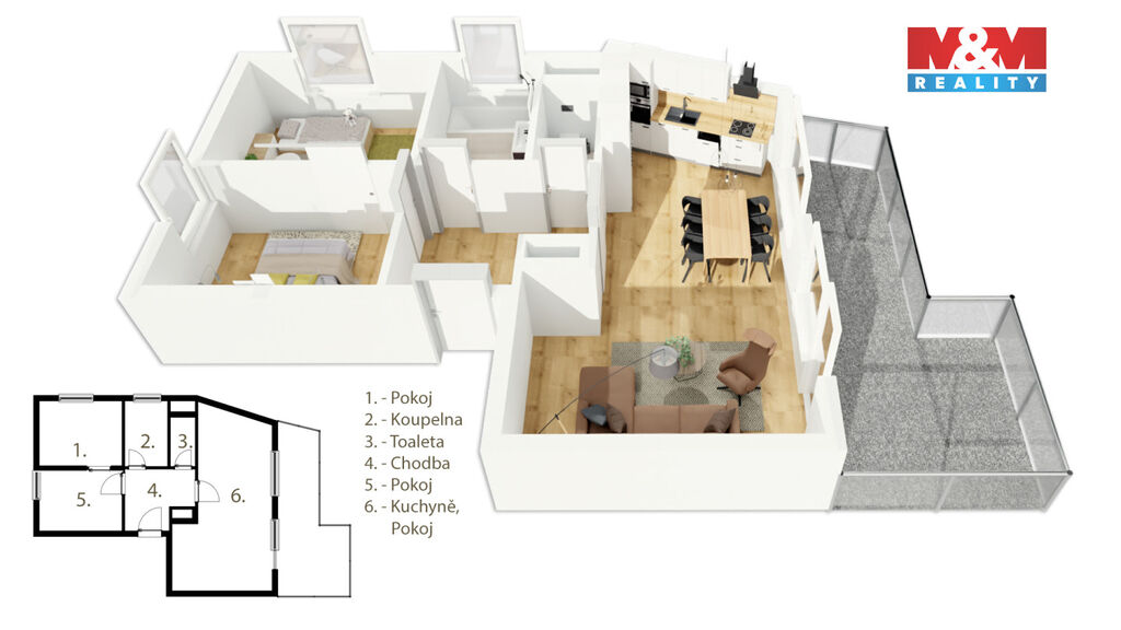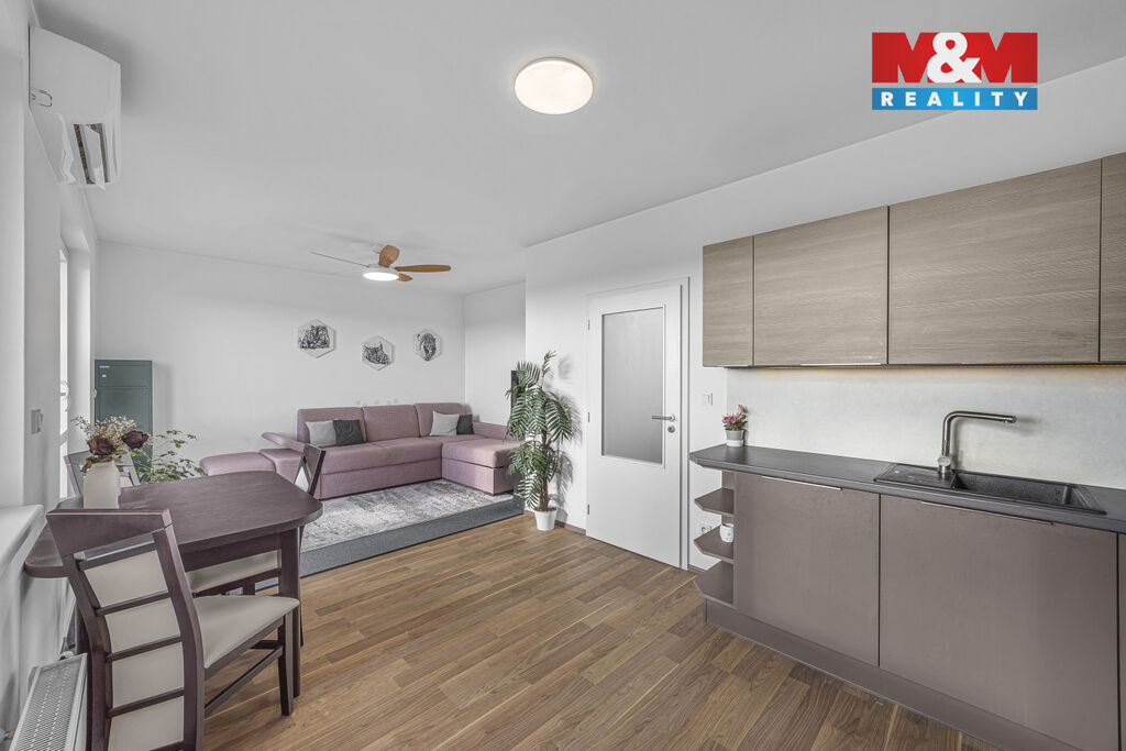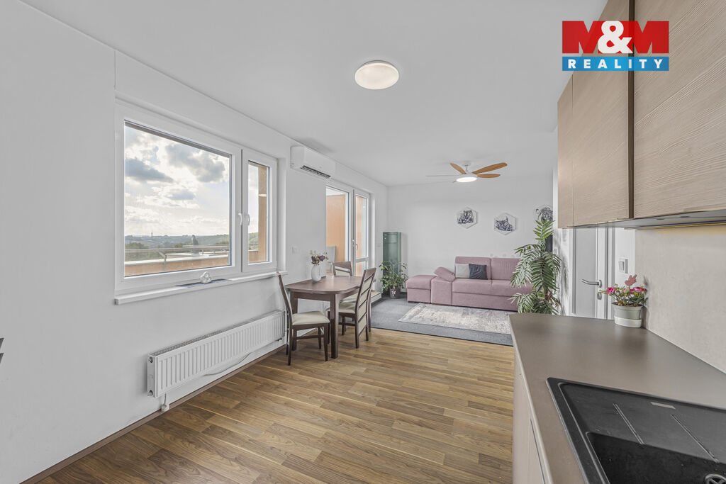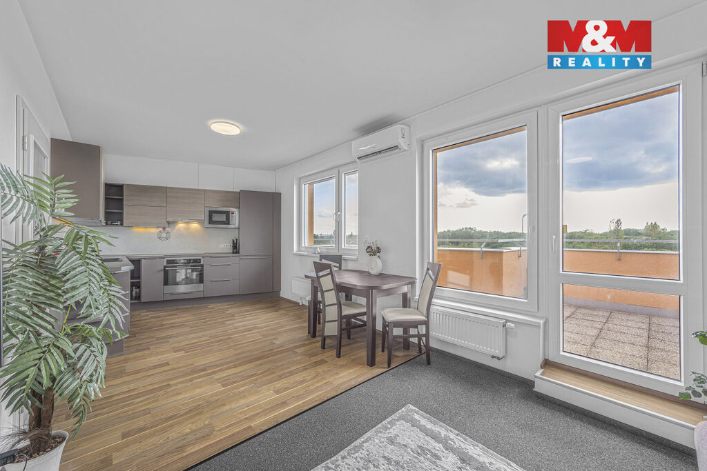 Nabízíme k prodeji moderní byt 3+kk o užitné ploše 59 m², situovaný v klidné části pražského Černého Mostu. Byt se nachází v posledním, 5. nadzemním podlaží cihlového domu z roku 2017 a nabízí krásný výhled z terasy o ploše 15 m². Součástí prodeje je také garážové stání a sklep. Byt disponuje kvalitní kuchyňskou linkou ORESI s vestavěnými spotřebiči značky Electrolux. Komfort obytných prostor zajišťují klimatizační jednotky v obývacím pokoji a ložnici, s venkovní jednotkou umístěnou na střeše. Všechna okna jsou vybavena elektricky ovládanými předokenními žaluziemi 90 Z. Nemovitost je ve velmi dobrém stavu a připravena k okamžitému nastěhování. Ideální volba pro ty, kteří hledají klidné bydlení s výbornou dostupností služeb.