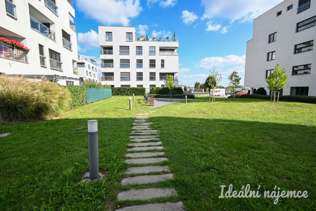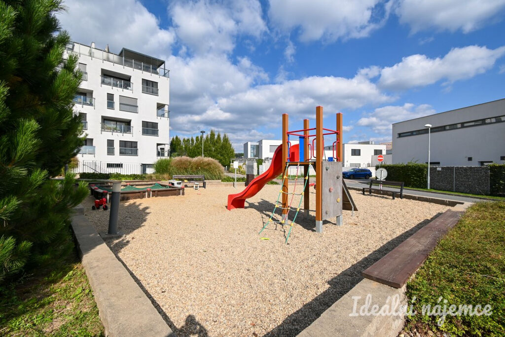 Součástí domu je společná zahrada s dětským hřištěm. V okolí najdeme supermarket, restaurace, školu i školku, zastávka MHD je v docházkové vzdálenosti.