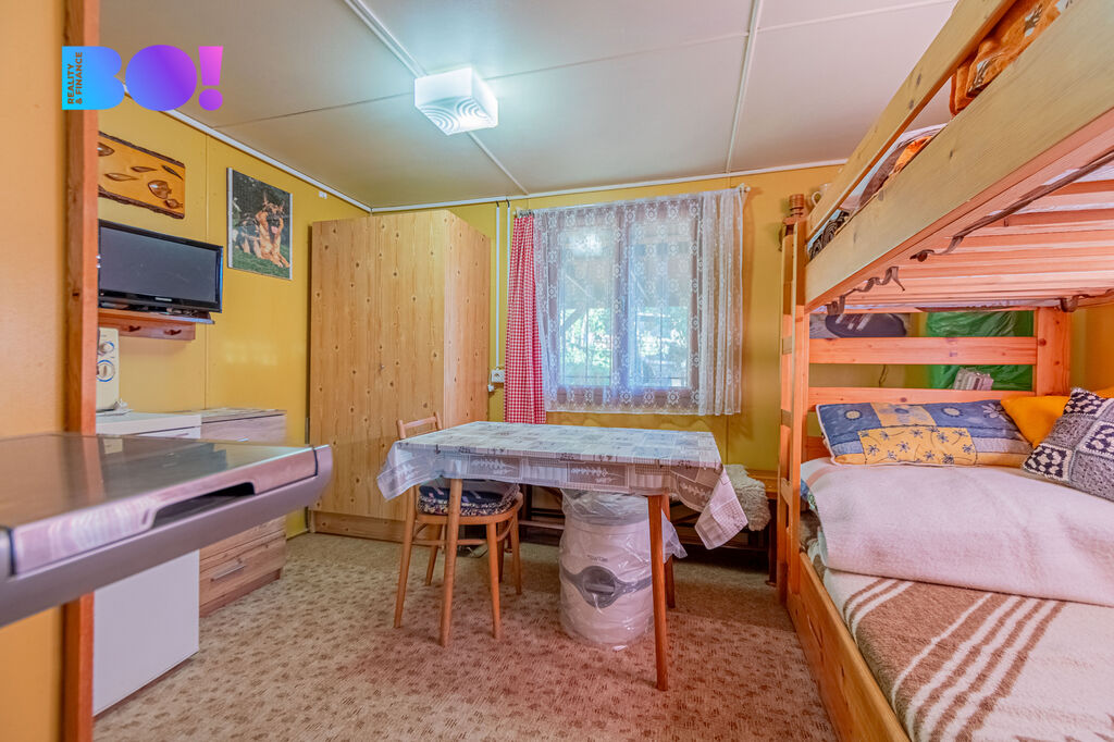 - Chata 17 m² – kompletně podsklepená, ideální pro uskladnění nářadí i zahradního vybavení.