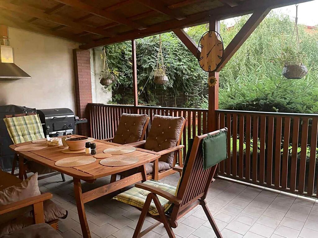 Dům je vybaven vším, co rodina potřebuje. K dispozici je velká garáž, do které zaparkujete až dvě auta. Na garáž volně navazuje prostorná dílna s ponky. Za domem je udržovaná zahrada, část zahrady je vyhrazena pro zeleninové záhony. Dům disponuje prostornou zastřešenou verandou, na kterou je šikovný vstup jak z kuchyně, tak i z obývací části. K dispozici je udírna.
