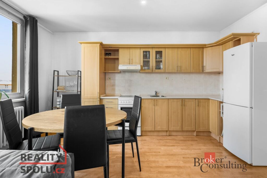 Nabízíme k prodeji světlý a prostorný byt 1+kk v osobním vlastnictví o velikosti 40,6 m² (včetně sklepa), který se nachází v 8. patře panelového domu s výtahem.