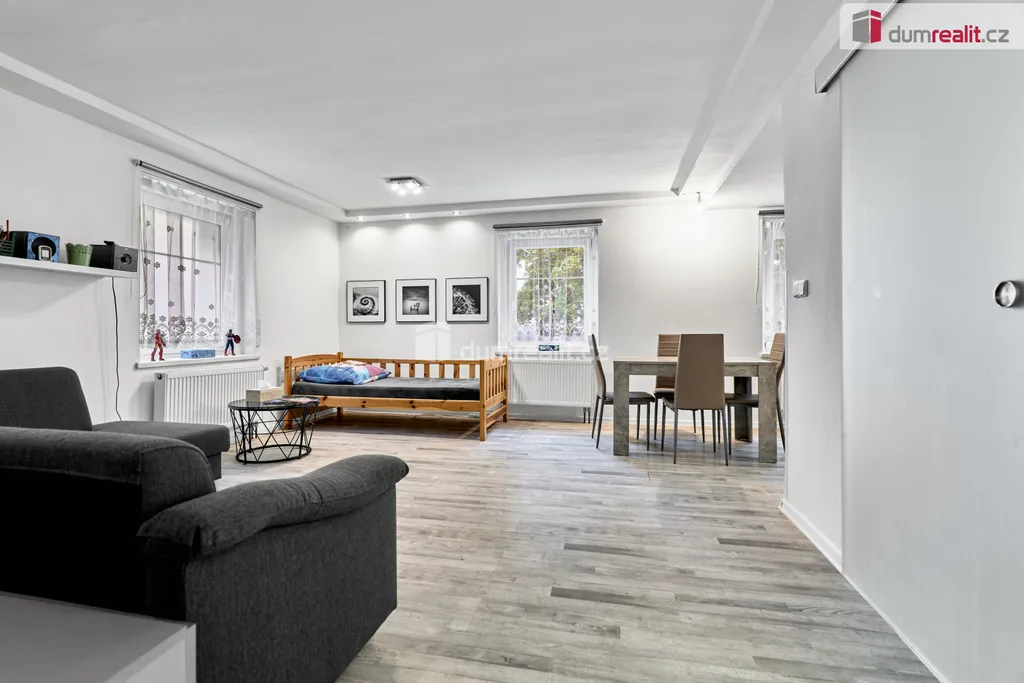 Dumrealit.cz Vám zprostředkuje prodej pěkného moderního bytu o velikosti 3+kk v Jáchymově ve velmi klidné a žádané lokalitě. Bytová jednotka o ploše 59 m² se nachází v 1. NP udržovaného zatepleného cihlového domu a je po kompletní rekonstrukci. Má nové el. rozvody, plastová okna, koupelnu s vanou, sprchovým koutem, umyvadlem a místem na pračku, samostatné WC s okénkem, podlahy z dlažby, PVC a plovoucí, podhledy s bodovými světly, interiérové dveře, z toho jedny posuvné skleněné. V předsíni a v ložnici jsou vestavěné skříně, vyrobené na míru, stejně jako kuchyňská linka s vestavěnými spotřebiči (sklokeramická deska, horkovzdušná trouba, mikrovlnná trouba). Byt je vytápěn el. kotlem s rozvodem do radiátorů, teplou vodu zajišťuje el. bojler. Obojí je umístěno ve sklepě, který je situován přímo pod bytem. Obec Jáchymov je obklopená krásnou krušnohorskou přírodou s mnoha turistickými, cyklistickými a běžeckými trasami, lyžařská střediska jsou ve vzdálenosti cca 5-10 km. Vzhledem k tomu, že před zadáním do inzerce nebyl vyhotoven PENB, je tento byt v souladu s platným zákonem zařazen do energetické třídy G. Tuto nemovitost lze hradit hypotečním úvěrem, který Vám rádi pomůžeme vyřídit v našem hypotečním centru. Ev. číslo: 652649.