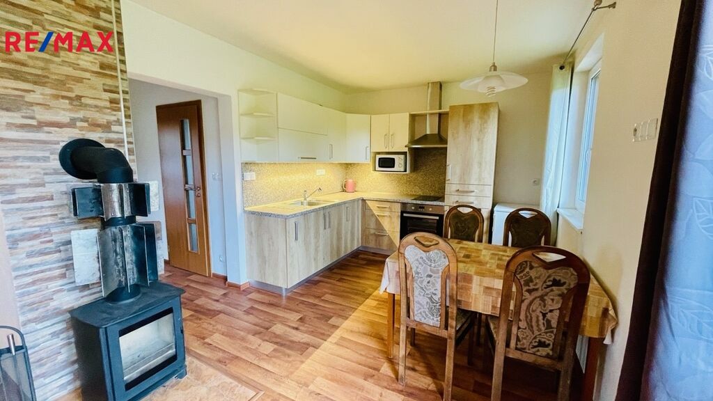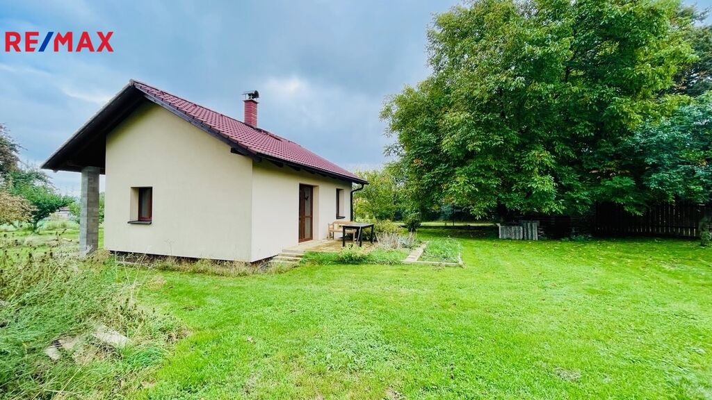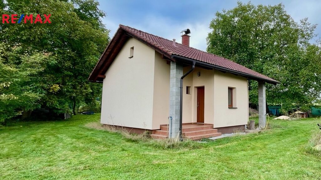 Nabízíme Vám k prodeji zděnou zateplenou chatu (57m2), postavenou v roce 2017 na pozemku o celkové výměře 1330m2, který je územním plánem vedený jako stavební (SV - plochy smíšené obytné venkovské). Jedná se o stavbu s č. ev. která je evidována jako objekt pro rodinnou rekreaci, ale ve skutečnosti je navržena k celoročnímu bydlení. Dispozice přízemí: zádveří (3m2), chodba (3,3m2), kuchyň s jídelnou + obývací pokoj + ložnice (29,7m2) a koupelna s toaletou (4,2m2). Do chaty v roce 2015 přivedena voda z vlastního vrtu s pitnou vodou, okna plastová, vytápění zajišťují krbová kamna, ohřev vody elektr. bojler a v koupelně je přípojka na pračku. Napojení na elektřinu je samozřejmostí, odpad řešen septikem. Zahrada je osázená vzrostlými ovocnými stromy, udržovaná, s dostatkem soukromí a prostoru pro odpočinek nebo zahradničení. Na konci zahrady je plechový zahradní domek pro uskladnění náčiní a vybavení.