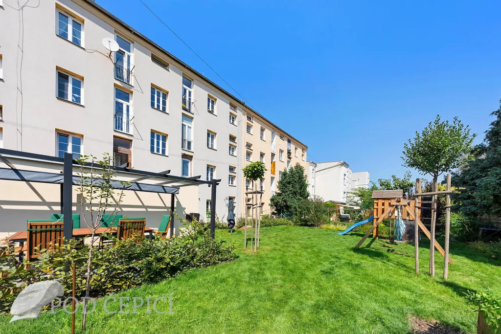 Bytový dům je dobře udržovaný, má novou fasádu, vyměněná dřevěná okna, novou střechu a stupačky. Bytovou jednotku naleznete ve 2. nadzemním podlaží, tudíž Vám ani nebude chybět výtah, který se v domě nenachází. Naopak jistě oceníte, že seběhnete jedno schodišťové rameno a vkročíte do oázy klidu ve vnitrobloku. Zde mají spolumajitelé domu k dispozici posezení s grilem, záhonky, sušák na prádlo a na své si příjdou i nejmenší obyvatelé domu.