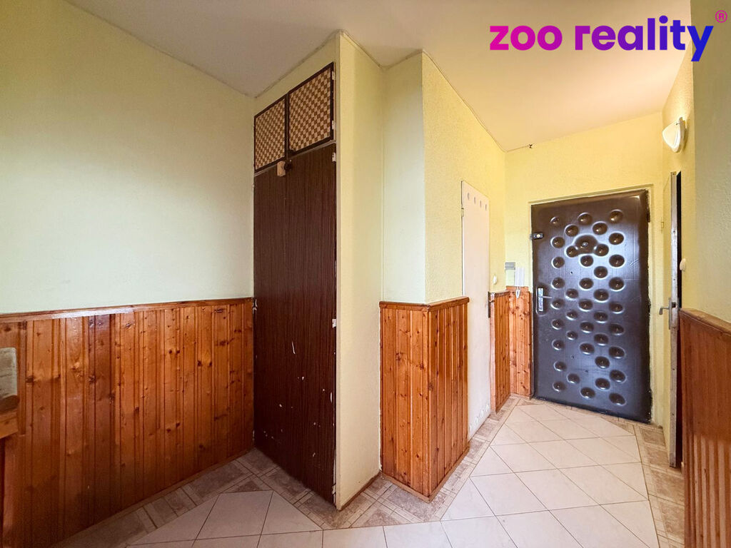 V bytě je chodba se zděnou šatnou, jeden velký pokoj, ke ktrému náleží lodžie, dvě menší ložnice, kuchyně s jídelním koutem a koupelnové jádro s odděleným WC.