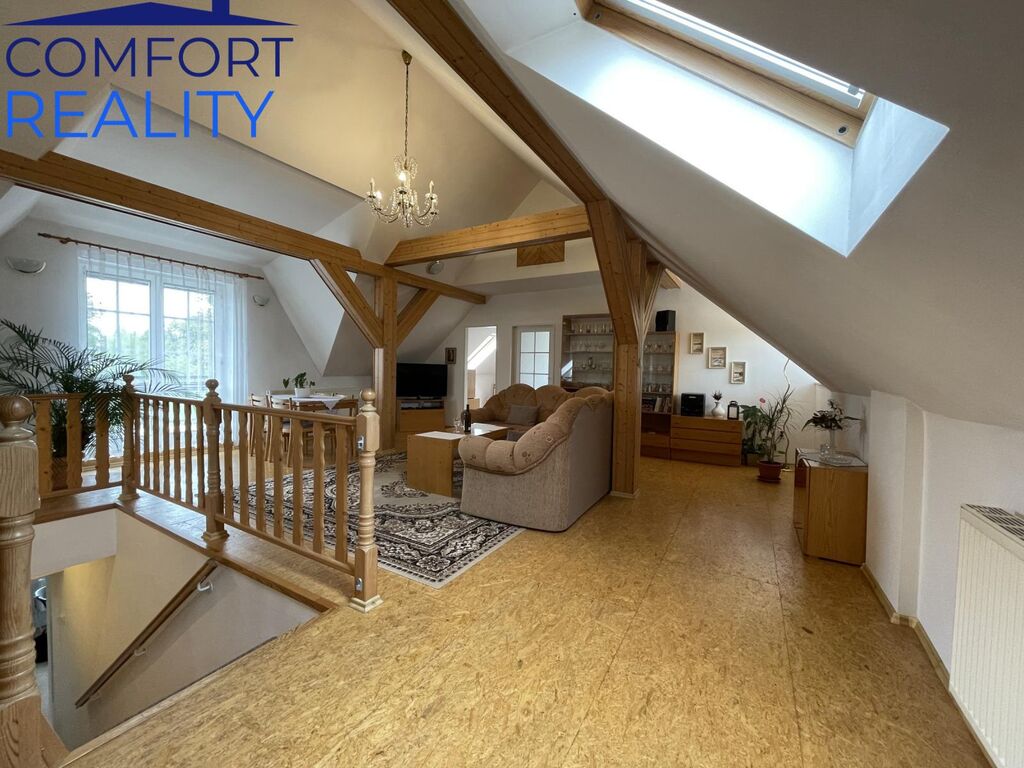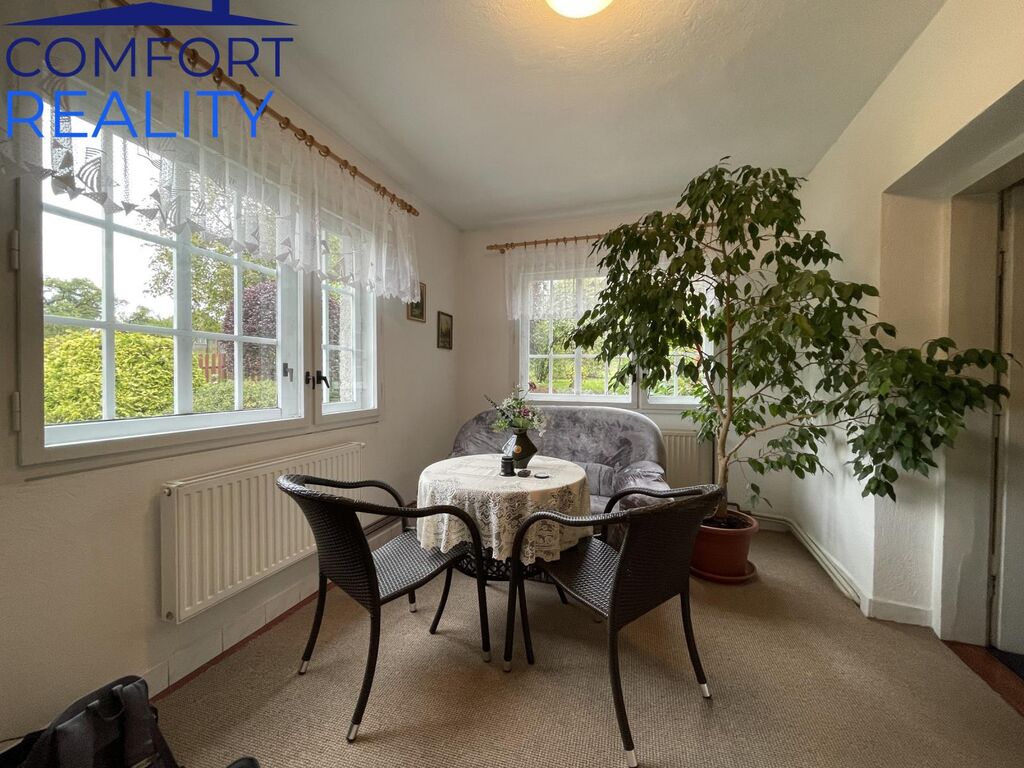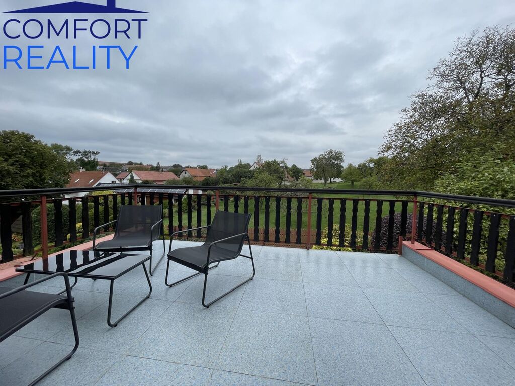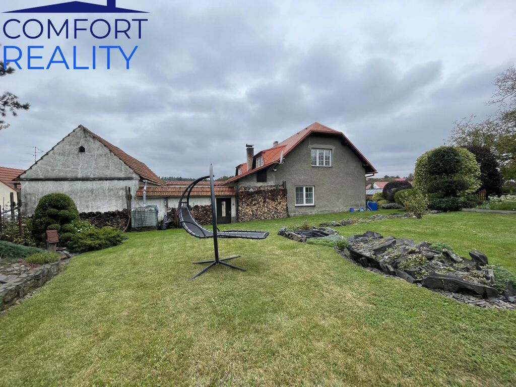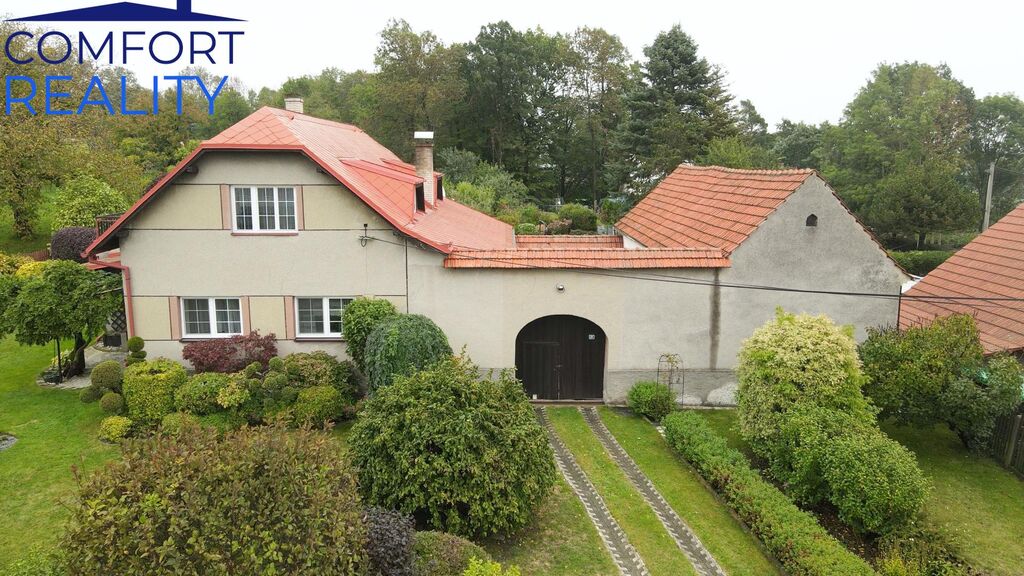 Dům jako samotný je umístěn na okraji obce, výstavba proběhla v roce 1947, kdy horní patro bylo přistavěno v letech 2001 2004 (je tak relativně mladé) a náleží k němu rovinatý pozemek o celkové výměře 1885 m2,na kterém je mimo samotný dům ještě umístěna hospodářská budova, která je z části využívána jako garáž, z části je dílnou a zázemím pro domácí zvířata. Pozemek je situován do klidové zóny, je vkusně udržován a ať už chcete pěstovat zeleninu na zahradě, posedět s přáteli či si s dětmi zahrát fotbal, máte zde prostor pro všechny a pro vše. Samotný dům je dispozičně řešen na patro s dispozicí 6+2 (2x 3+1) s tím, že přízemí je se zádveřím, třemi pokoji, kuchyni, koupelně, wc, komoře a kotelně. Horní patro je o dvou místnostech, prostorné hale, kuchyni, koupelně, wc a v neposlední řadě velké terase. Dům má vyměněny okna za plastová (kromě zádveří), proběhla zde částečně výměna rozvodů elektřiny, je napojen na plyn, elektřinu, zdroj vody z obecního vodovodu, odpadní vody svedeny do stávající jímky. Dům je z části podsklepený. O vytápění domu a ohřev TUV se stará kondenzační plynový kotel z r. 2023, zůstala i možnost topit v kotli na tuhá paliva (ve 3.emisní třídě). Dům je ihned obyvatelný bez zásadních investic většího rozsahu. Kdo si to umí spočítat a hledá klidné a pohodové bydlení s dobrou dostupností do okolních měst, tak koupí získá velkorysé bydlení za velmi rozumnou cenu. Doporučuji prohlídku.