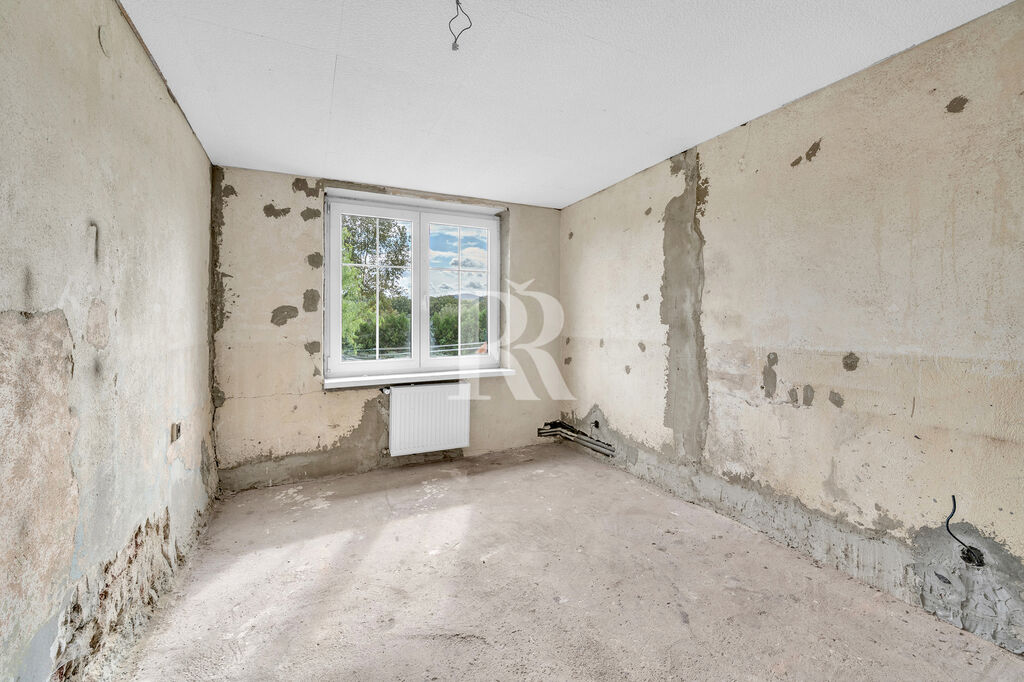 Hotové jsou některé místnosti, koupelna, podlahy, příčky, topení. Okna jsou taktéž již vyměněna.