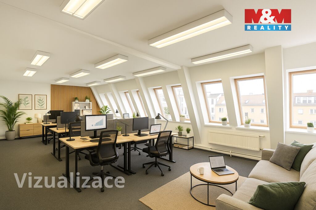 Rozlehlý kancelářský prostor o velikosti 100 m² k pronájmu v atraktivní lokalitě pražských Vinohrad, jen pár minut chůze od náměstí Jiřího z Poděbrad. Kancelář je členěna do několika praktických místností: vstupní hala je ideální pro zřízení recepce, následuje prostorná hlavní místnost vhodná jako open space pro týmovou práci a další oddělená místnost poskytuje klidné prostředí pro samostatnou kancelář. Součástí prostoru je také plně vybavená kuchyňka a koupelna. Díky velkému množství oken je interiér světlý a příjemný po celý den, komfort zajišťuje i klimatizace. Prostor tak nabízí jak reprezentativní zázemí pro klienty, tak praktické řešení pro každodenní pracovní provoz. Fixní zálohy na služby činí 6 000 Kč. Nájemné je stanoveno na 39 000 Kč měsíčně, vratná kauce ve stejné výši. Provize realitní kanceláře 46 000 Kč.