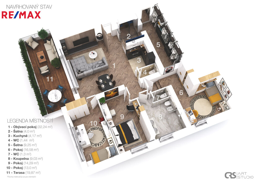 Náhledové fotografie s vybavením jsou vizualizace, aby si budoucí kupující dovedl lépe představit, co se do daného prostoru vejde nebo jak se dá zařídit.