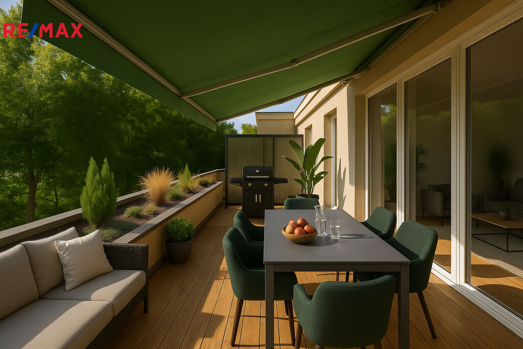 Byt o dispozici 4+1, 95 m² v ulici Pod Skalkou kombinuje výhledy do zeleně s velkou terasou 20m² orientovanou na jih a vynikající dopravní dostupností.