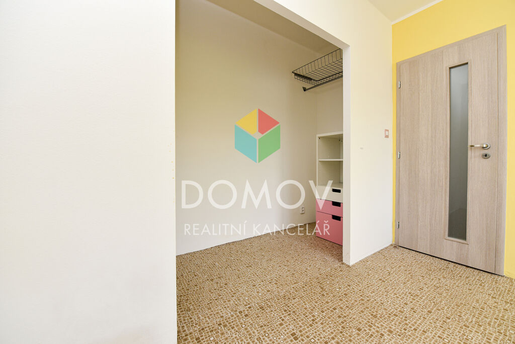 Dispozice bytu se skládá ze vstupní chodby, dětského pokoje, ložnice s šatnou, komory, koupelny s vanou, samostatné toalety, obývacího pokoje s kuchyňským koutem. Ten je vybaven kuch. linkou, dřezem, sklokeramickou varnou deskou, el. troubou, myčkou, digestoří, lednicí. V obývacím pokoji pak nalezneme rohovou sedačku, stolek s televizí, jídelní stůl s židlemi. Okna jsou plastová, vybavena venkovními roletami na severní straně a žaluziemi na jižní.