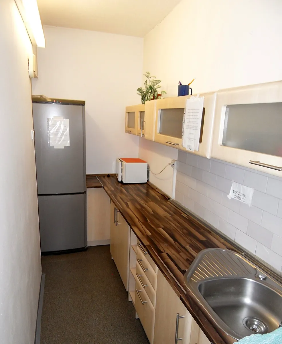 Hezká kancelář k pronájmu o ploše 12 m2, ul. Perlitová 31 u sportovního klubu a hotelu Oáza. Prostor je možno využít také jako provozovnu služeb. Kancelář je umístěna v multifunkční budově zabezpečené pultem centrální ochrany. Přístup do kanceláře je možný kdykoli 24 hodin denně, 7 dní v týdnu. Na chodbě je k dispozici kuchyňka a sociální zařízení. Nájem 5.040,-/měs, dále zabezpečení PCO 200,-Kč/měs, popelnice 90,-Kč/měs plus DPH. Možnost parkovací karty za 1.216,-/měs plus DPH. Na podlaze koberec, nové plastové okno. Platba za el. energii dle vlastní spotřeby-elektroměr a poměrová měřidla na teplo, voda se rozpočítává s ostatními nájemci podle velikosti pronajaté plochy. Přímo do kanceláře není zavedena voda. Kancelář může (ale nemusí) být zařízená nábytkem dle vlastního výběru, představeným na fotografiích. Výborná dopravní dostupnost od metra Budějovická, placené parkování u kanceláře na velkém parkovišti.