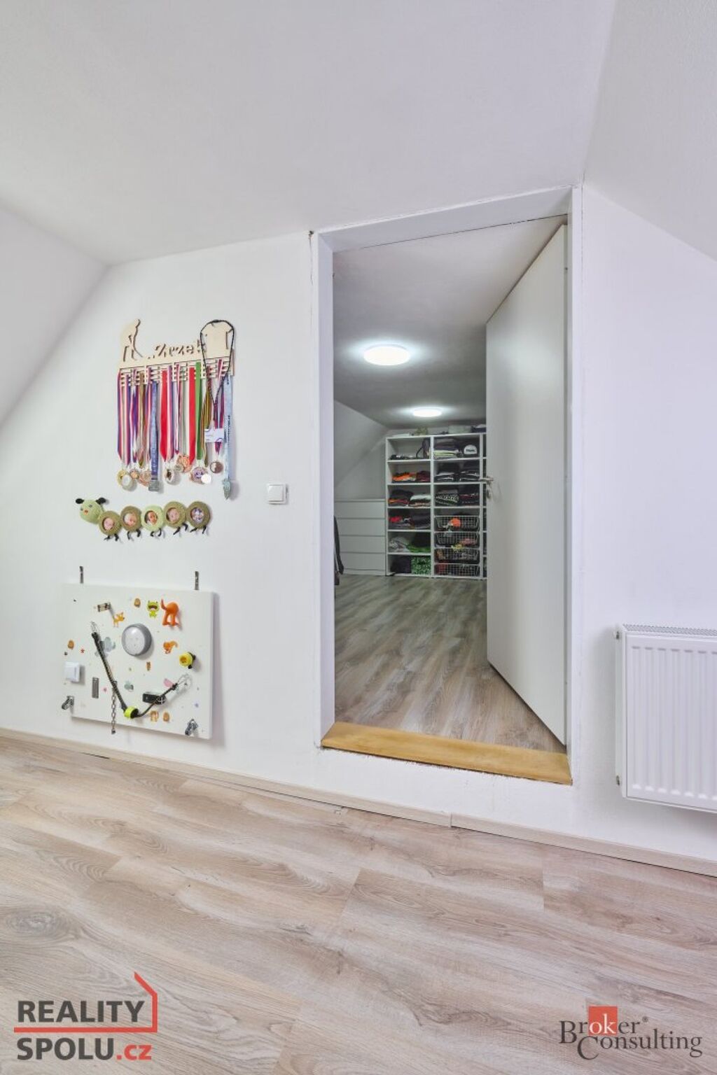 tři ložnice, velká šatna a koupelna se sprchou a toaletou, prádelna.