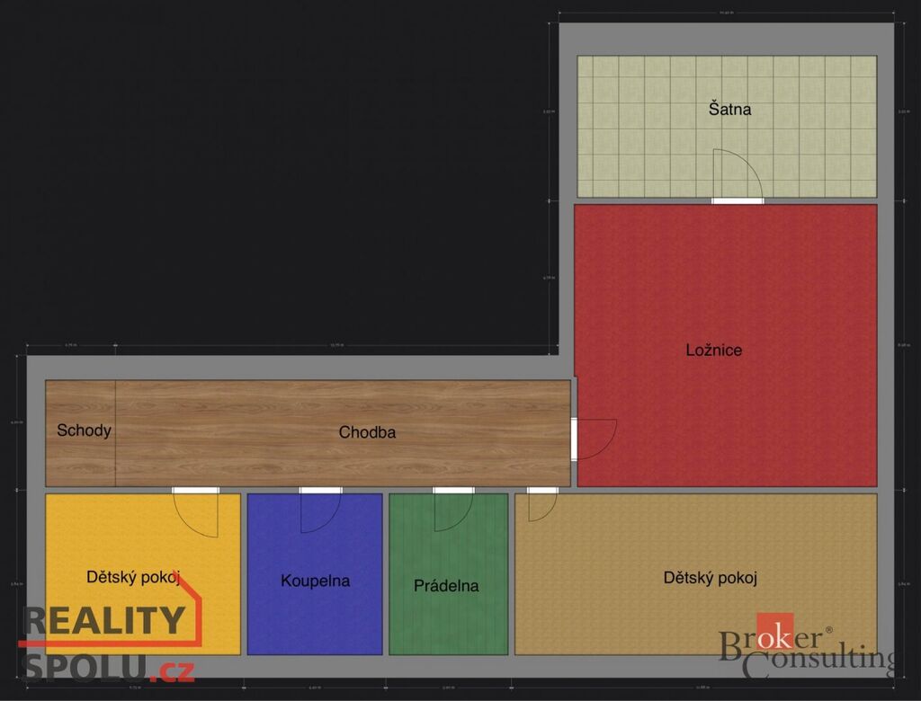 Dům je přízemní s obytným podkrovím do tvaru L a dispozičně nabízí: