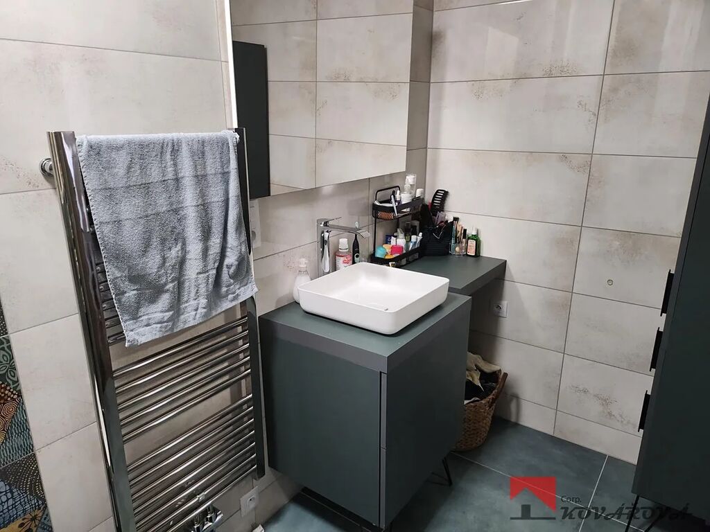 Byt 2+kk, 49m2, (po rekonstrukci), s malým balkonkem, s šatnou, komorou a parkovacím místem ve dvoře, ve 3.patře cihlového domu bez výtahu, v centru obce Kralupy nad Vltavou. Byt je kompletně zrekonstruovaný, je plně vybaven a určen max pro 2 dospělé osoby. V obývací části je kuchyňská linka na míru s vestavěnými spotřebiči (mikrovlnka, el. trouba, lednička, sklokeramická indukční deska, myčka), rozkládací sedačka s matrací, stolky, židle, v koupelně sprchový kout společně s WC a veškerým nábytkem, komora s vývodem vody k pračce a sušičce (pračka, sušička není součástí vybavení bytu), šatna, ložnice s postelí, matracemi a veškerým nábytkem. Na podlaze po celém bytě dlažba a plastová okna. K bytu náleží sklep 9m2 v suterénu domu. Přiveden internet KV NET (450 Kč), měsíční poplatky činí 5700 Kč, provize RK, vratná kauce 25000 Kč, dlouhodobý pronájem, k nastěhování od listopadu (přesný termín na dohodě). Veškerá občanská vybavenost v místě, dům stojí v těsné blízkosti nádraží, výborná dopravní dostupnost na Prahu. Pro bližší informace a prohlídky volejte makléřku