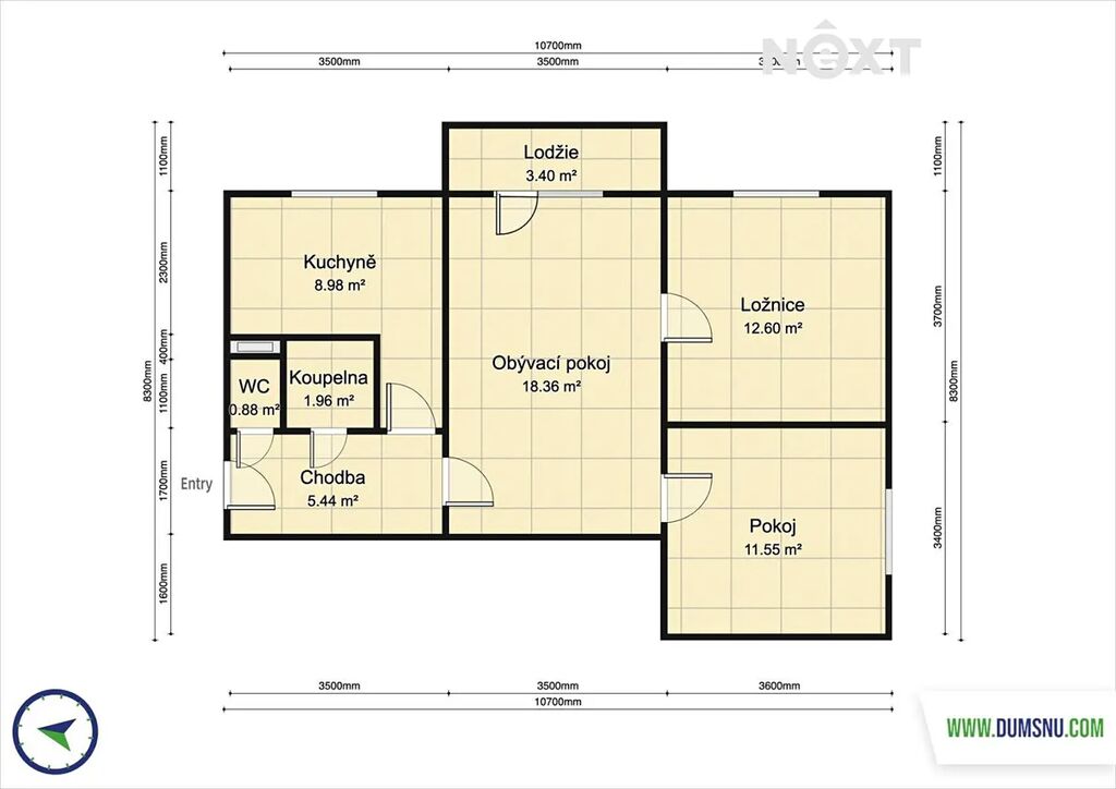 Byt o výměře 59 m2 se nachází v 2.NP revitalizovaného panelového domu bez výtahu.