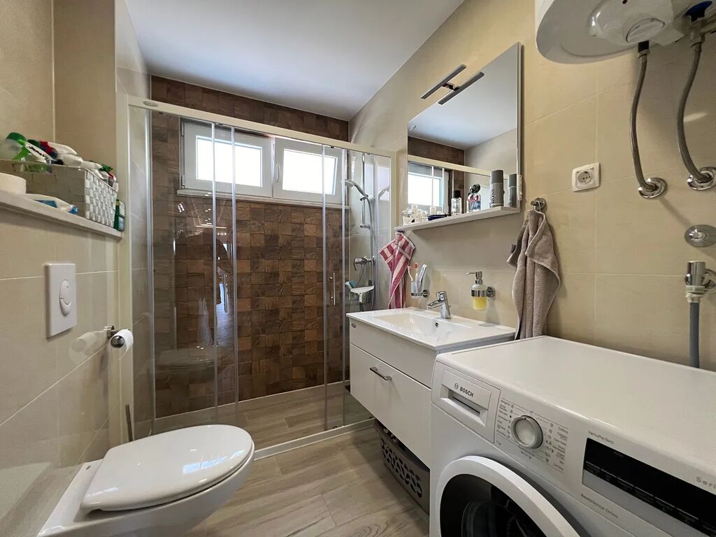 Apartmán o ploše 76,85 m2 sestává z chodby, tří ložnic, koupelny, toalety, balkonu o rozloze 6,20 m2, obývacího pokoje s kuchyní a jídelním koutem s přístupem na prostornou jižně orientovanou lodžii o rozloze 15,30 2 s částečným výhledem na moře. Apartmán je velmi málo využívaný, je kompletně zařízený novým nábytkem a jsou zde i 2 klimatizační jednotky. K apartmánu náleží jedno parkovací místo a garážové stání o rozloze 12 m2 v suterénu budovy.