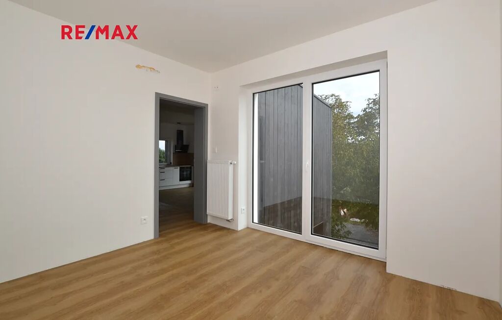 Byt čeká na svého prvního nájemce. Okna bytu včetně lodžie jsou orientována do zahrady se vzrostlými stromy, kterou nájemce může využívat k relaxaci.