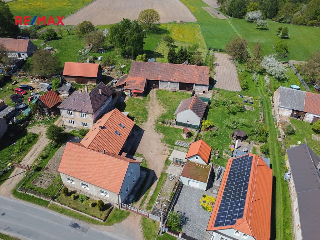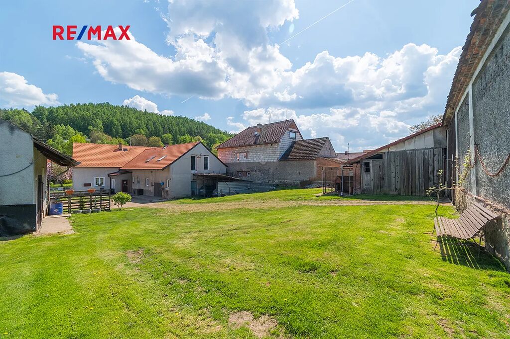 Na pozemku se dále nachází také velká cihlová stodola se zachovalým krovem, malý domek s garáží, kde je možné vybudovat další bydlení, krycí stání pro dvě osobní auta. Rozlehlá zahrada o ploše cca 2.459 m² nabízí nepřeberné možnosti využití. Najdete zde ovocné stromy, prostor pro pěstování zeleniny a dostatek místa pro relaxaci.