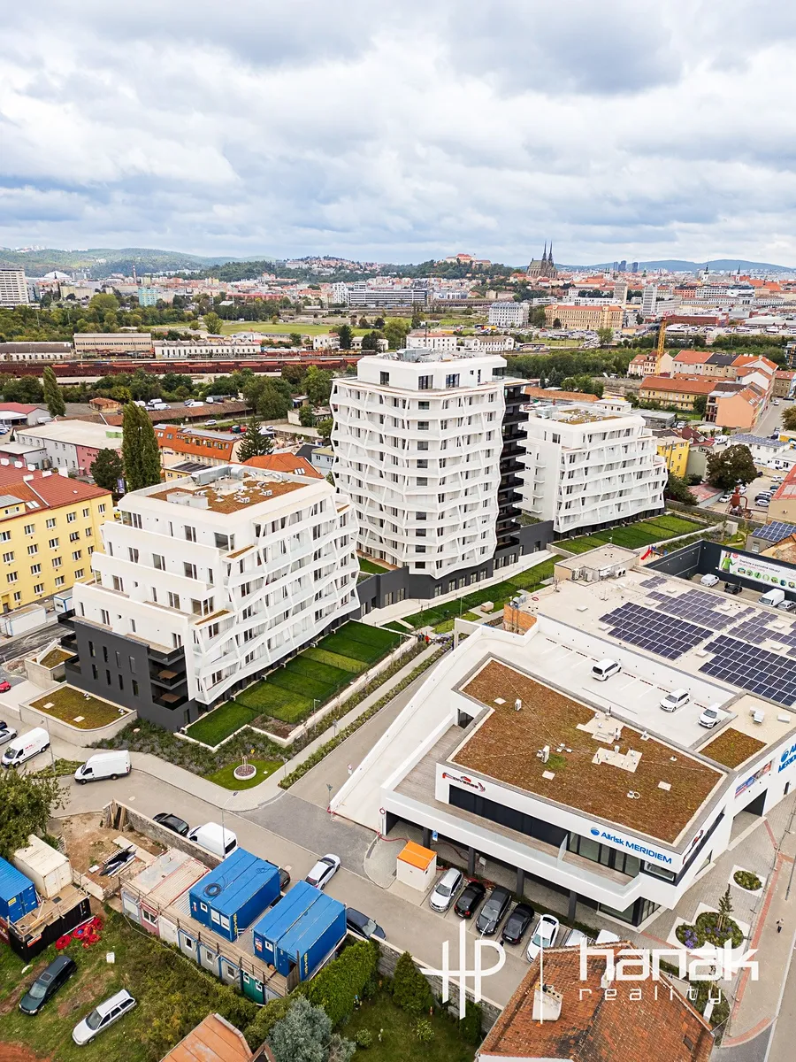 We offer for rent a beautiful studio apartment with a spacious terrace in the newly built Meridiem residential complex, close to the center of Brno.