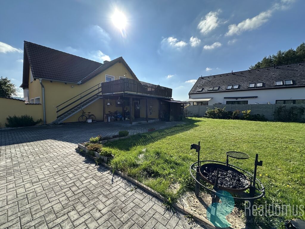K pronájmu zprostředkujeme prostorný byt 4+kk (90 m²), který je spíše jako rodinný dům – má vlastní vstup, velkou zahradu 400 m², prostornou terasu s pergolou a dokonce i malé jezírko.