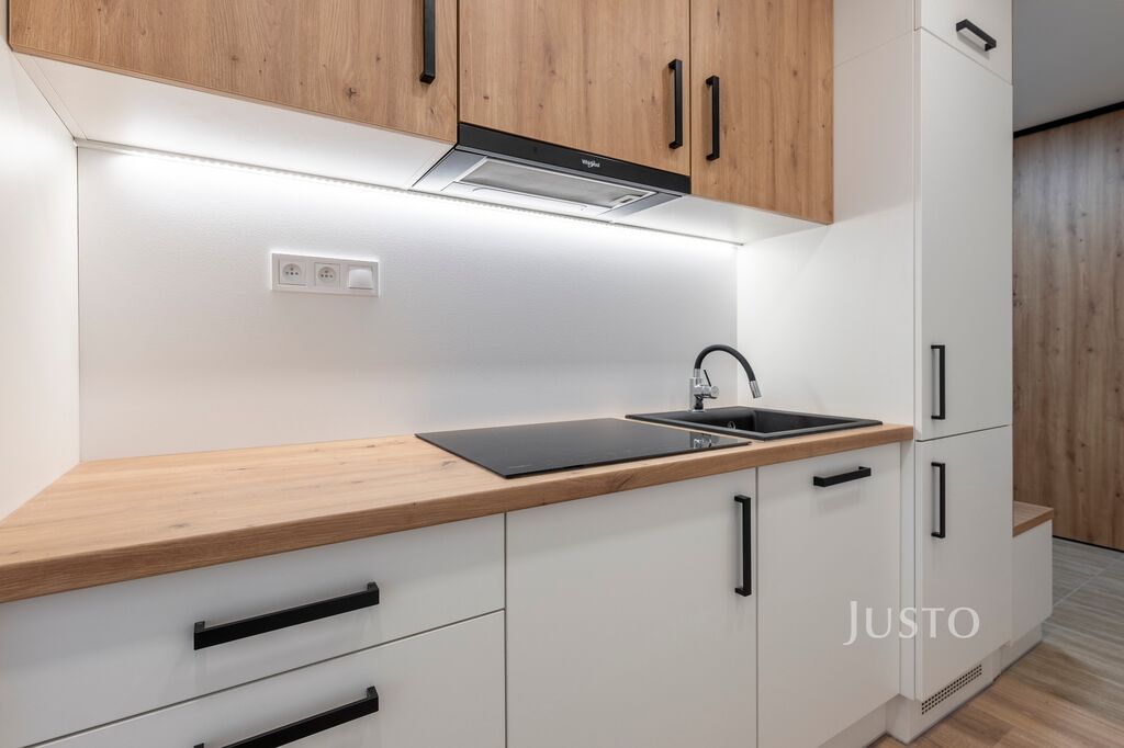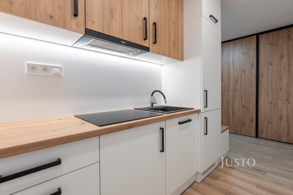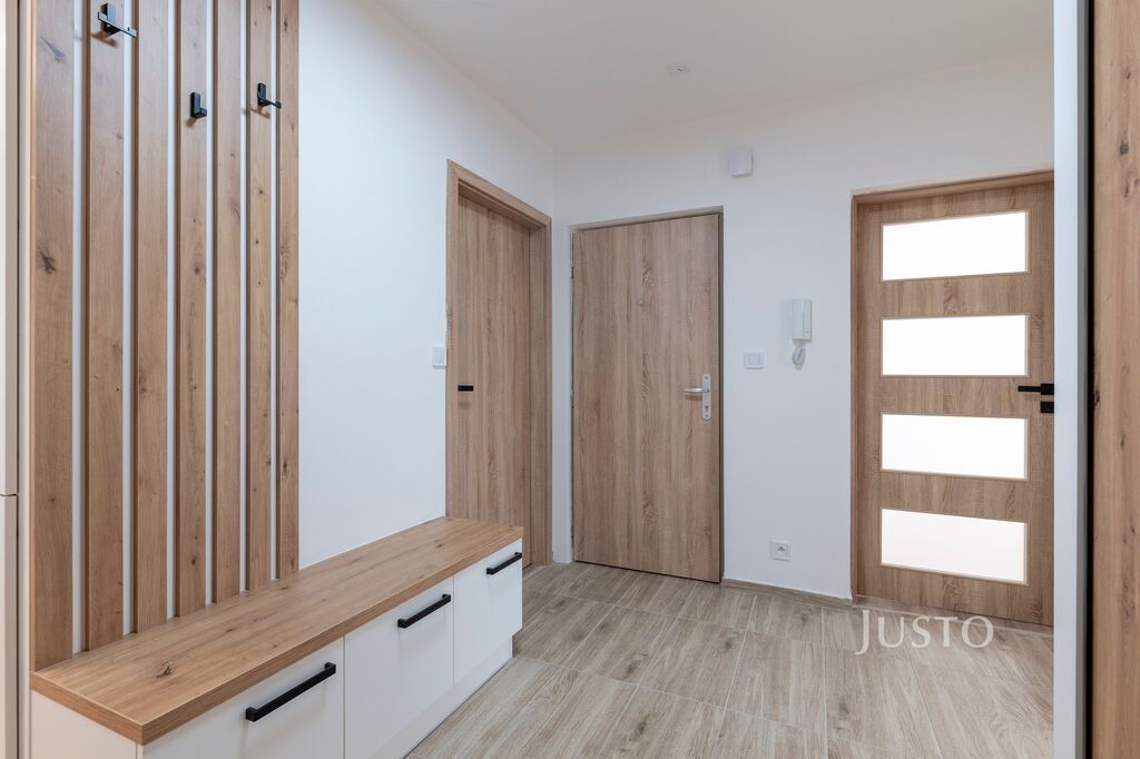 Vše laděno v příjemných neutrálních tónech s důrazem na funkčnost a čistý design. Plastová okna a zateplení budovy zajišťují nízké náklady na bydlení, energetická třída C – úsporná.