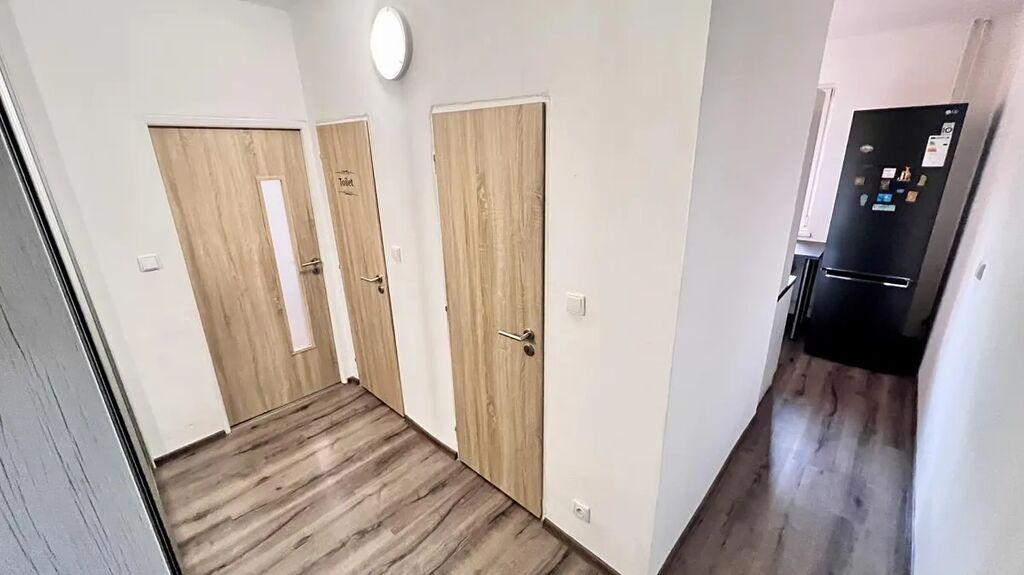 Bytová jednotka se skládá ze dvou samostatných pokojů, kuchyně, koupelny, samostatného WC a prostorné chodby. V chodbě se nachází praktická vestavěná skříň, která poskytuje dostatek úložného prostoru. Obytné místnosti mají moderní plovoucí podlahy.
