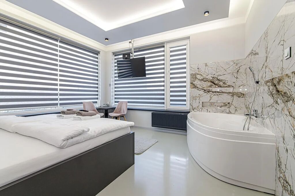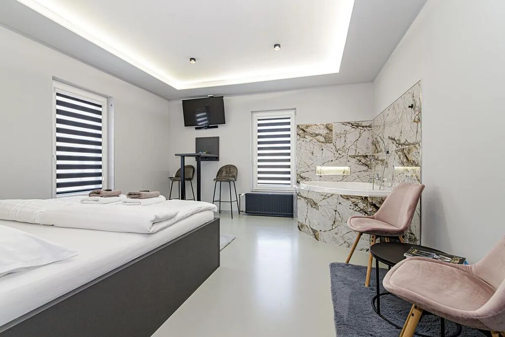Dva větší pokoje (26 m 2) jsou navíc vybaveny vířivou vanou.