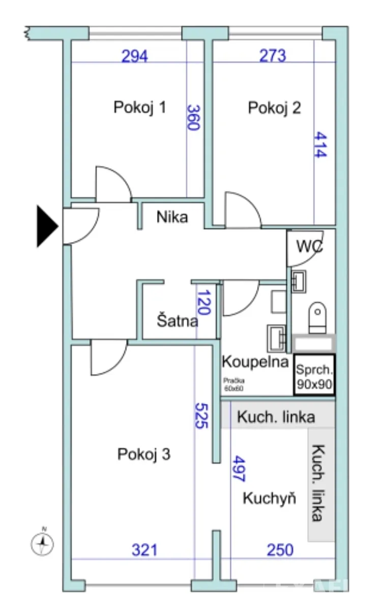 Byt je velmi dobře dispozičně řešený. Má dva neprůchozí pokoje, obývací pokoj je propojen s kuchyní, v koupelně je praktický sprchový kout, samostatná toaleta s umývátkem a bidetkou, nechybí praktická šatna.