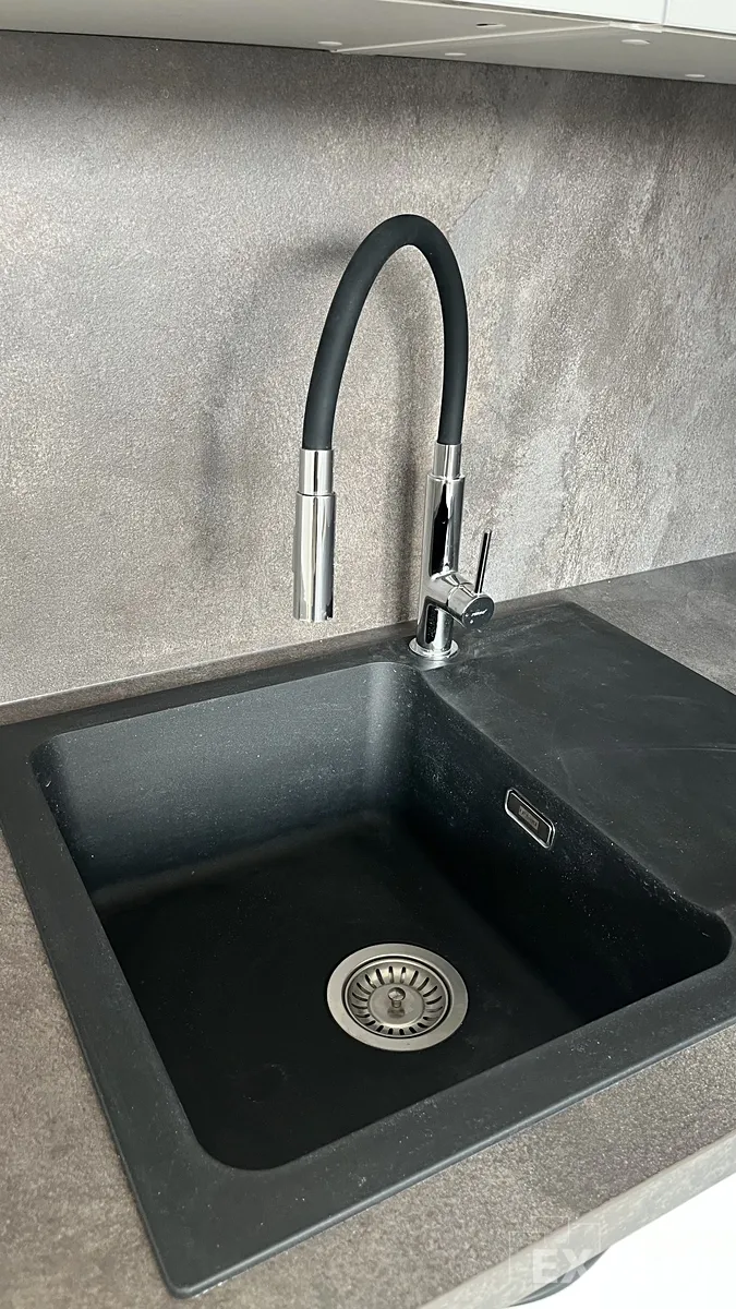V kuchyni je nová kuchyňská linka Oresi s přípravou pro instalaci elektrospotřebičů a myčky.